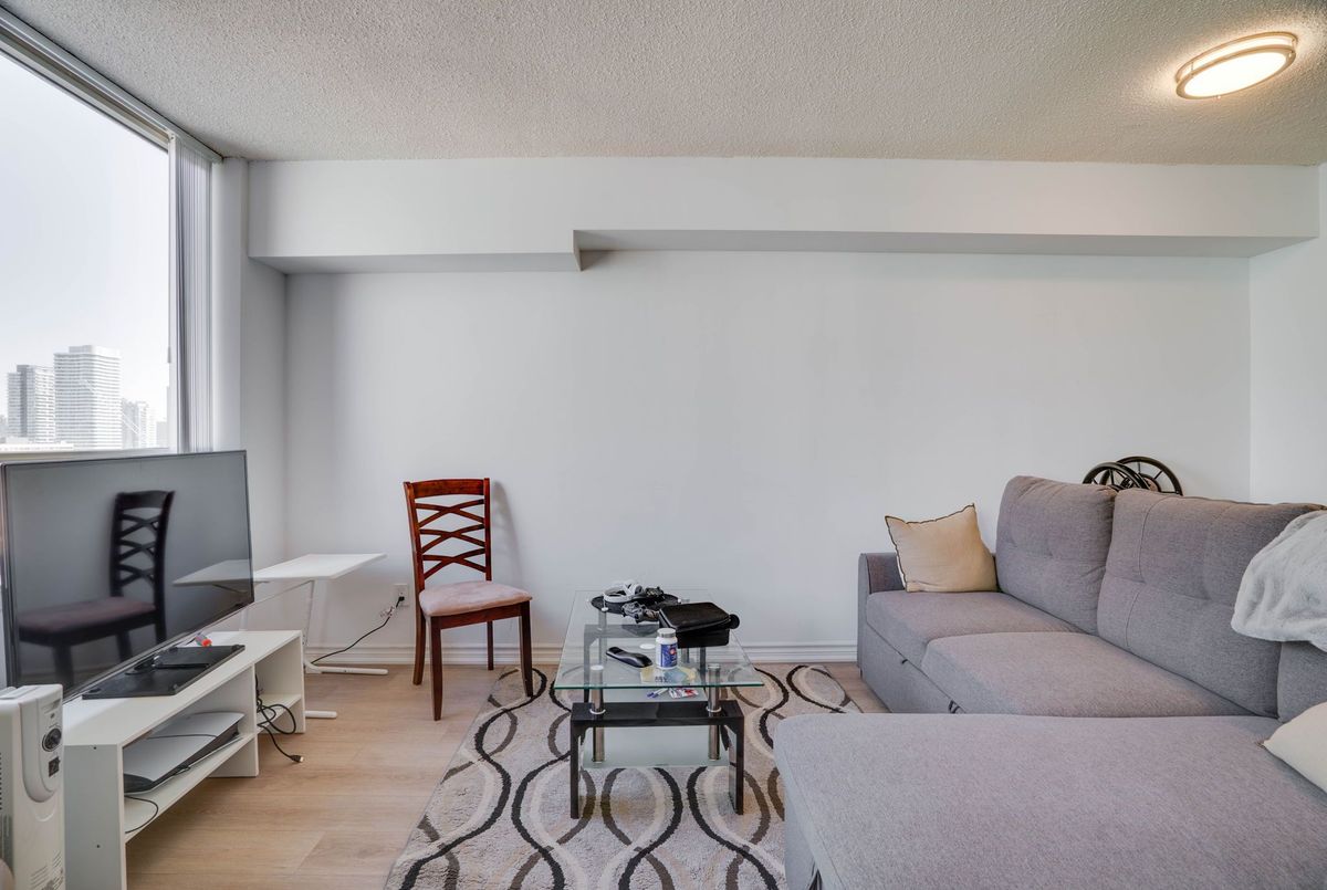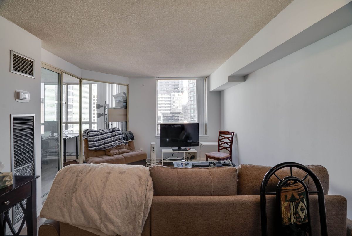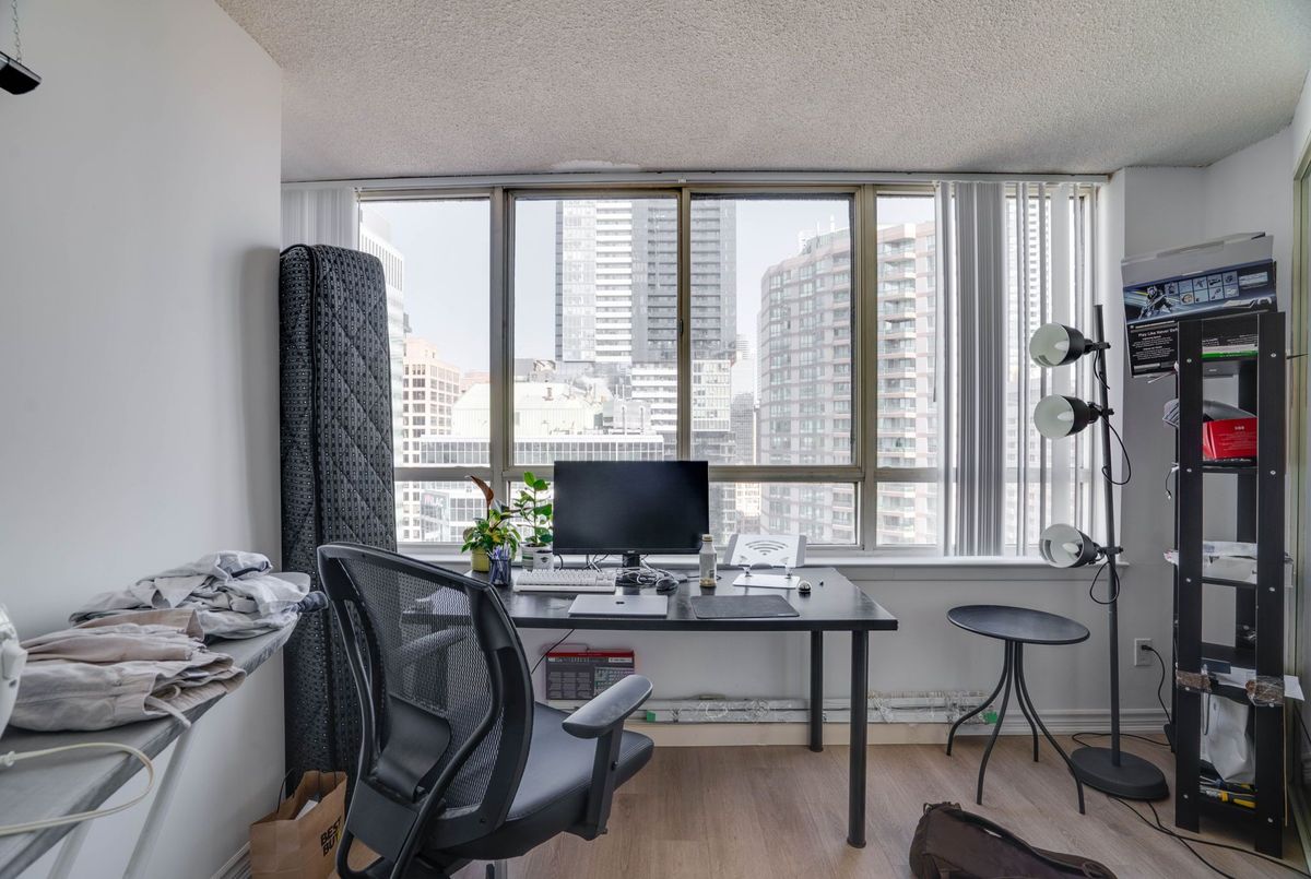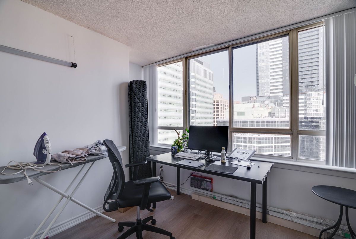 Welcome to this beautifully renovated 1 bedroom + den suite with parking. This is an open concept suite located in the heart of downtown Toronto on the 26th floor. Enjoy the spectacular views of the skyline. The spacious layout features an updated modern kitchen, generous living area and a versatile den, perfect for a home office. Flooded with natural light, this unit blends style and comfort. Located walking distance to U of T, Dundas Square, Queen's Park, shopping, restaurants, and public transit. Building amenities include 24 hour concierge, indoor pool, hot tub, rooftop terrace with BBQ, squash and racquet court and exercise room. An incredible opportunity to live or invest in one of Toronto's most vibrant communities. Single family unit, Pet restrictions, no smoking no roommates