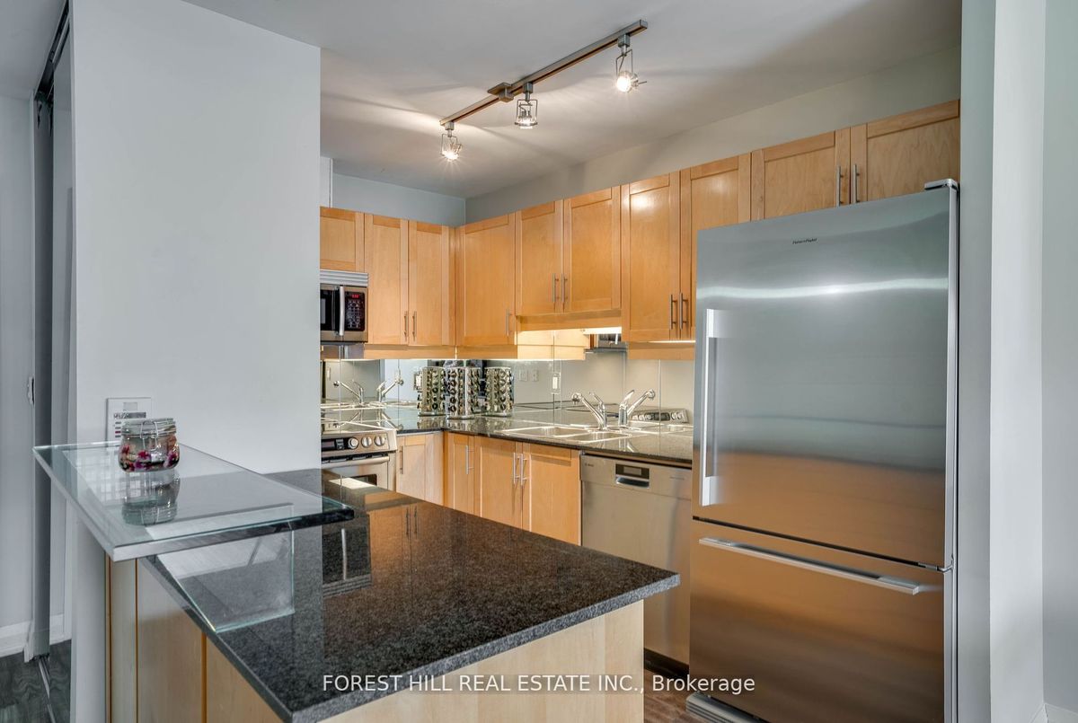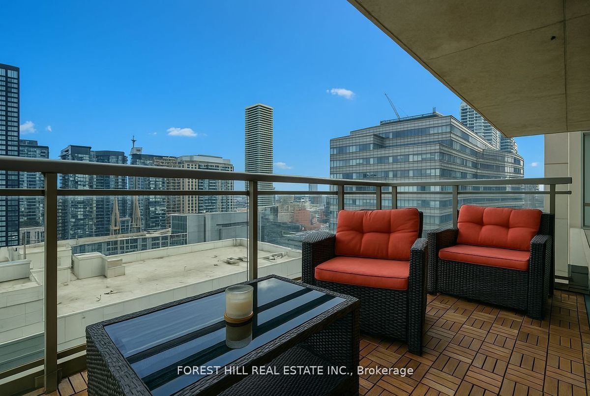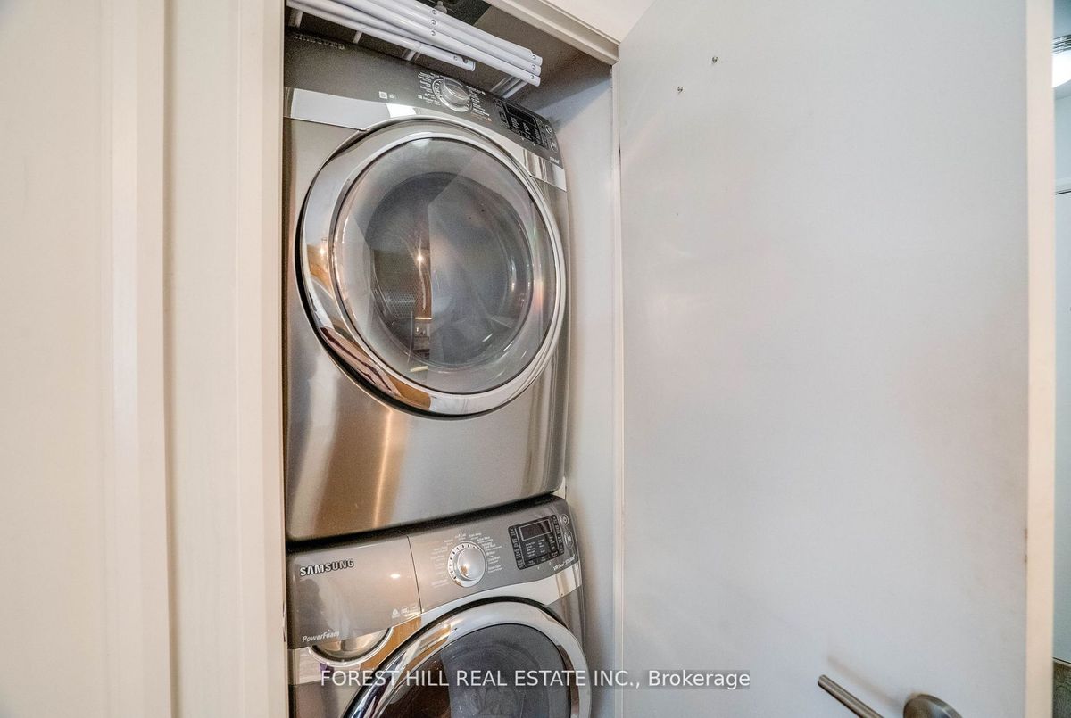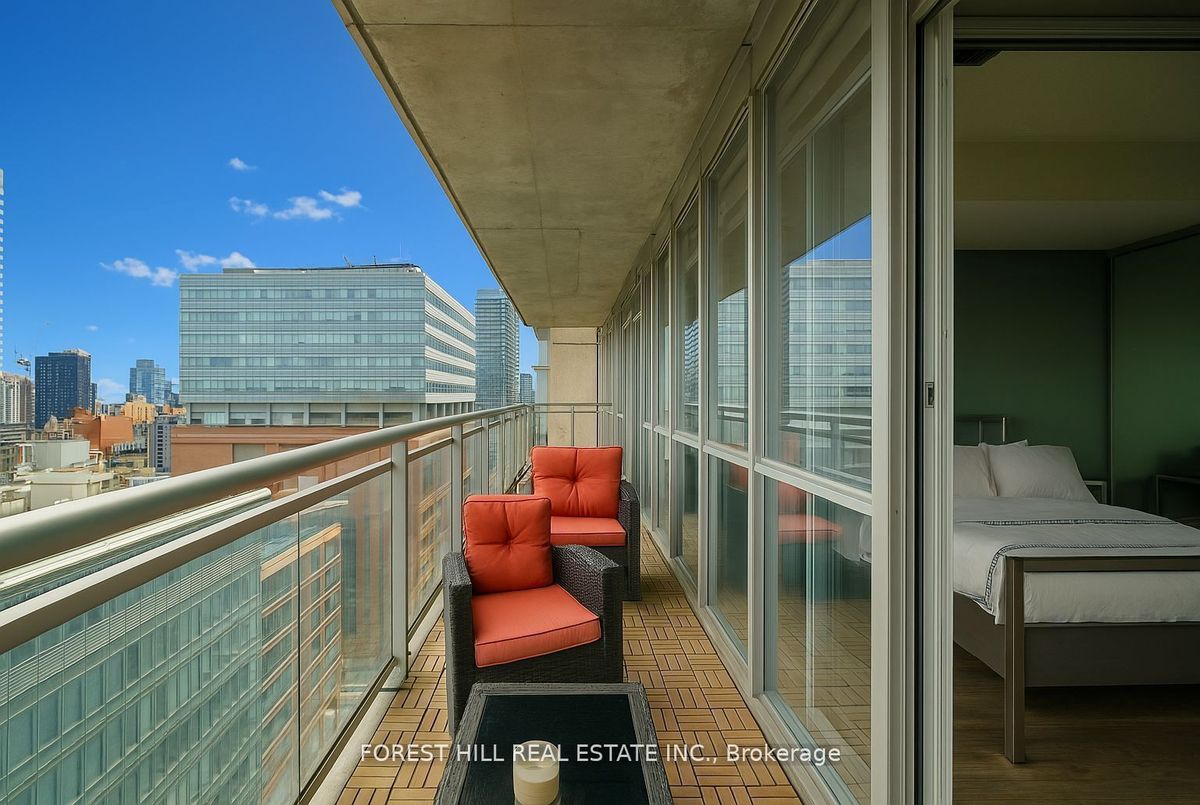 Rarely offered, this beautifully renovated and spacious 1-bedroom + convertible den, 2-bath suite offers 662 sq ft of stylish living in the boutique Opus-Pantages building. Enjoy unobstructed east-facing city and lake views from the 18th-floor, 107 sq ft terrace, along with owned parking and locker in a prime downtown location. Steps from hospitals, Bay Street, Ryerson, U of T, theatres, Eaton Centre, subway, and streetcar access. This bright unit features soaring 9 ceilings, floor-to-ceiling windows, and hardwood floors throughout. The gourmet granite kitchen is perfect for entertaining, with a sushi bar island, breakfast bar, double sink, new stainless steel Bosch appliances, and a luxurious Fisher & Paykel fridge. The spacious primary bedroom boasts custom closets and a spa-like 4-piece ensuite, with an additional full bath for added convenience. Upgrades include custom closets and a full-sized washer/dryer everything you need for comfortable and stylish urban living.