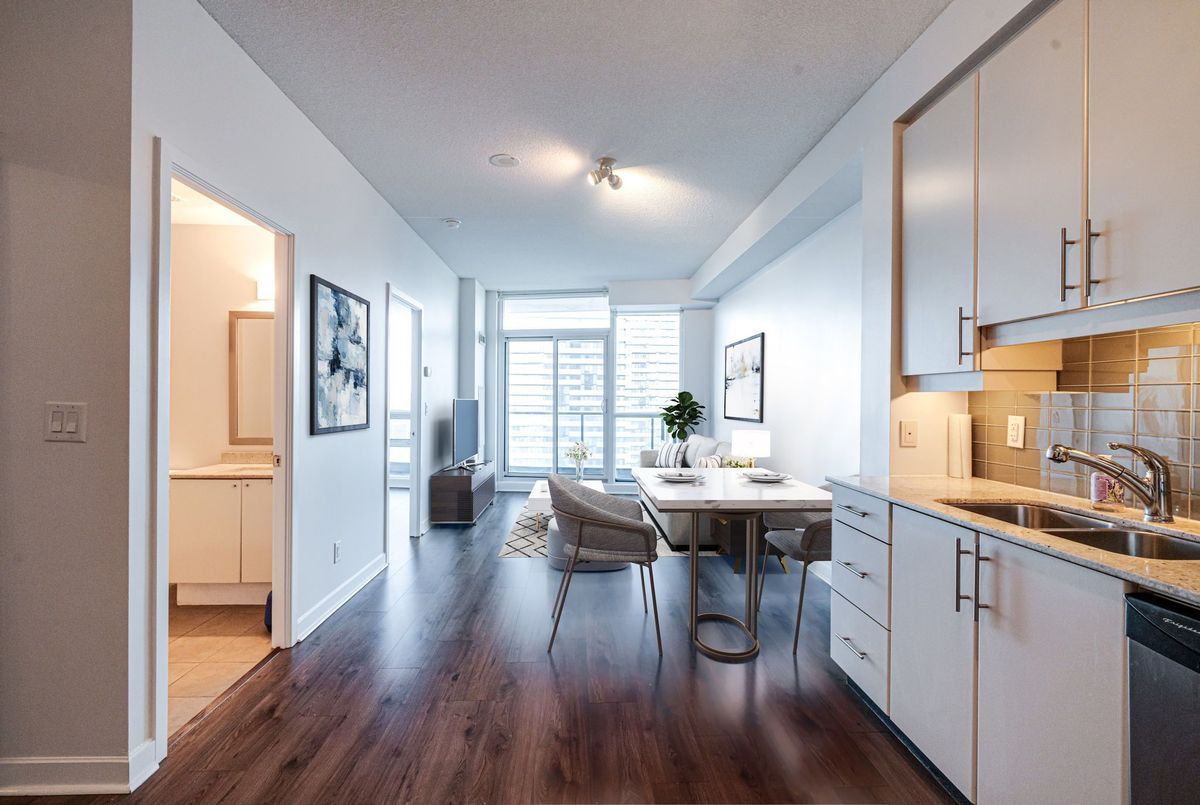 1 Year OR 6 Month Lease Term! Beautiful Condo In Downtown Toronto Waterfront Area, 9Ft Ceilings, Floor To Ceiling Windows, One Bedroom And Den, Can Be A Guest Bedroom , Modern Kitchen W/ Stainless Steel Appliances, Walk Out To Nice Size Balcony With A Clear Beautiful View Of The Water And City! Steps To The Union Station, Subway Ttc, Lakefront, Financial & Entertainment District. Unit has been meticulosity kept and freshly painted. Incredible Building Amenities, 24Hr, Concierge, 30,000 Sqft. Pinnacle Club-Gym, Outdoor Terrace & Bbq.