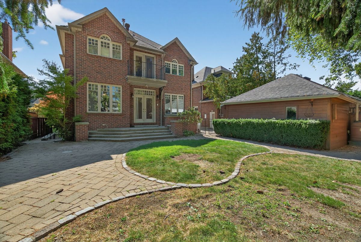 Locally known as "The Flag House" this one of a kind century home in Prestigious Lawrence Park North is a great opportunity for wise buyers. Majestic 2 1/2 story 6 bedroom 4 bath executive home with 3 story addition sitting on a 50X123 foot private lot with 4 car drive and 1 car garage. Modern custom kitchen with 9' ceilings, huge granite topped centre Island, generous breakfast area open to Family Room with gas fireplace, walkout to garden and outdoor kitchen with built in BBQ. Massive living room and separate wood paneled dining room with butler's servery and pantry. Elegant prime bedroom retreat with soaring cathedral ceilings fireplace, 5 pc ensuite with double sinks, separate shower and soaker tub walk-in closet and walkout to private balcony. 5 more bright and spacious bedrooms with tons of built ins, large closets & vaulted ceilings. Study nook on 3rd floor. Laundry chute on every floor. Walkup basement with separate entrance, spacious rec room 7th bedroom and office room. Fully fenced and landscaped lot with stone walkways and patios and custom built garden shed. This unique luxury residence is great value for wise buyers.