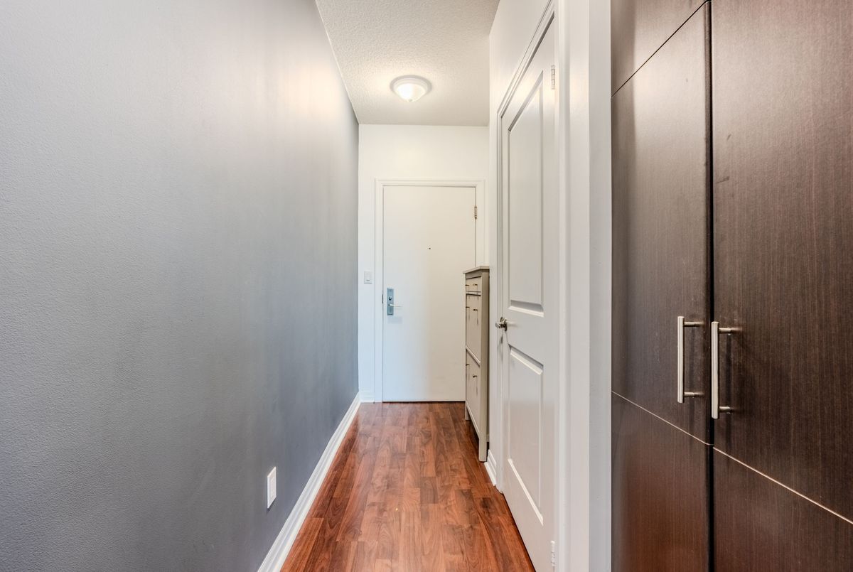 Welcome to this bright and spacious 1-bedroom corner unit condo, perfectly located in one of North York's most convenient neighbourhoods. Boasting 9-foot ceilings and large windows, this suite is filled with natural light and offers distant views of the Toronto skyline.The open-concept layout is both functional and stylish, featuring a modern kitchen with ample pantry space, ideal for all your cooking and storage needs. The generously sized bedroom includes a walk-in closet and a convenient in-suite laundry closet, offering everyday comfort and practicality.Enjoy peaceful mornings and quiet evenings in this sun-filled space, designed for modern living.Located just steps from Fairview Mall, Don Mills Subway Station, and minutes to Hwy 404/DVP,commuting is a breeze. Students and professionals alike will love the door-to-door GO Bus service to both Centennial College and the University of Toronto Scarborough campus.Whether you're a first-time buyer, savvy investor, or someone looking to downsize without compromise,this condo checks all the boxes for urban convenience and comfort.Don't miss your chance to own this beautifully positioned corner unit in a prime location!