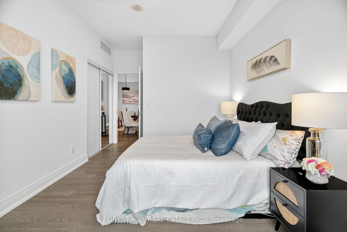 Luxe Liberty Living at Bliss condos! This Light filled spacious corner suite in the heart of Liberty Village has a Thoughtful and functional open-concept layout. Floor-to-ceiling windows bringing in natural views w/ ideal split bedroom layout. Modern kitchen w/ S/S appliances & granite counters flows into Living/Dining area that is perfect for entertaining. Large primary bedroom, spacious second bedroom + versatile den ideal for office/guest space or reading nook. Prime locale, Steps to shops, cafes, restaurants, transit & all Liberty Village has to offer. Parking & locker included. This one is a must see!