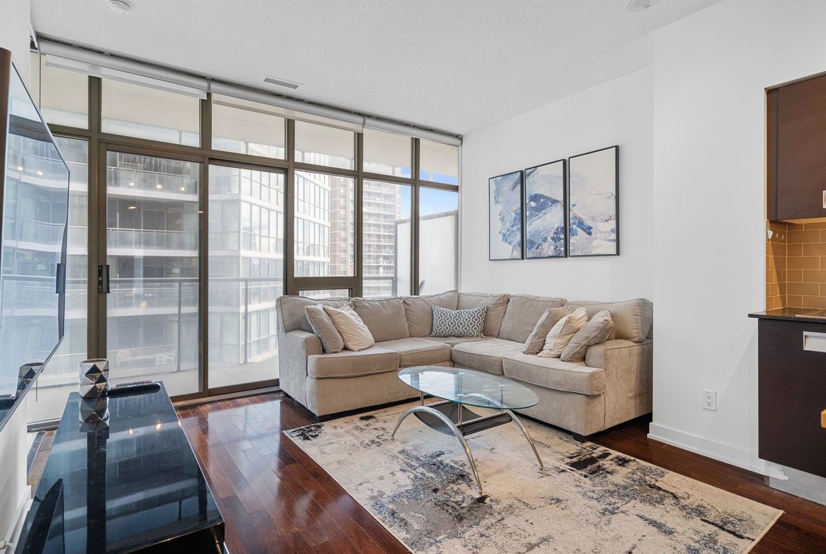 Spacious 1+1 Bedroom Condo in the Heart of the City. Welcome to this stunning one-bedroom plus den suite at 33 Charles Street, offering bright, open-concept living in one of Toronto's most desirable downtown locations - just steps to Yonge & Bloor. Featuring 9-foot ceilings and floor-to-ceiling windows, this unit is filled with natural light and boasts a sleek modern design throughout. The kitchen is equipped with stainless steel appliances, granite countertops, custom backsplash, and ample cabinetry perfect for everyday living and entertaining. The spacious living and dining area opens to a full-width balcony, ideal for enjoying your morning coffee or relaxing in the evening. The primary bedroom includes plush broadloom, a large double closet, and a walkout to the balcony. A versatile den can serve as a home office or guest space. The elegant four-piece bathroom is tastefully finished. Includes a Parking spot and locker. Fantastic Pet Friendly Luxury Building offering Extensive Amenities. Suite is vacant and ready for you to move in! Located just steps to Yonge & Bloor, Yorkville, top restaurants, shopping, transit, and more this is downtown living at its finest.