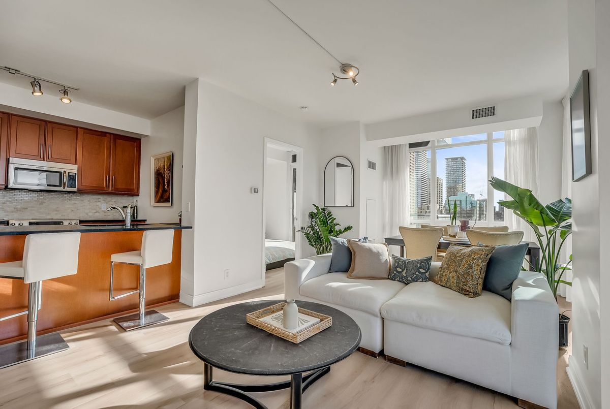 Presenting a rare opportunity to own an exquisite 2-bedroom, 2-bathroom corner suite nestled among Toronto's most prestigious addresses. Thoughtfully designed with a coveted split-bedroom layout, this refined residence features brand-new flooring, high smooth ceilings, rich city views, and a chef's kitchen that flows effortlessly into an expansive, light-filled living area-perfect for entertaining or working from home.Step outside and immerse yourself in the luxury of Summerhill, Rosedale, and Yorkville, where world-class boutiques, cafés, and restaurants await. Enjoy two private balconies showcasing sweeping, unobstructed southwest views that create a true urban oasis.Residents of The Milan are treated to an impressive selection of upscale amenities, including a warm and welcoming 24-hour concierge, exceptional building management, a serene indoor pool, well-appointed gym, elegant party room, rooftop terrace, and more. Ideally situated between Rosedale and Bloor-Yonge subway stations, this suite also comes with parking.Bring your most discerning buyers-this is a unique chance to secure a sophisticated home in one of the city's most sought-after neighbourhoods.