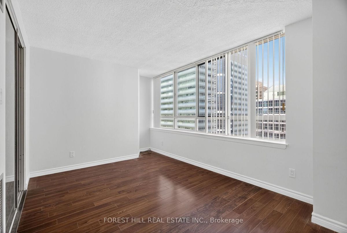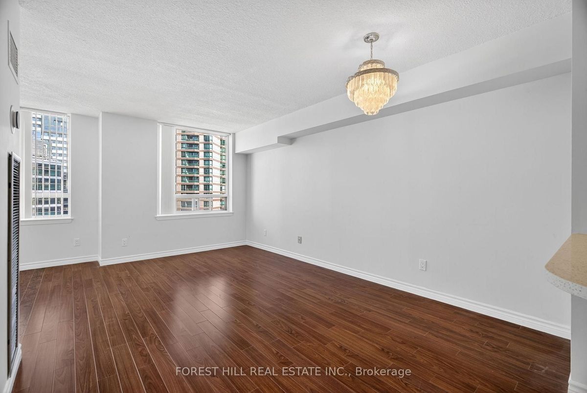 Great value for wise buyer! Bright and spacious 1 Bedroom 1 Bath condo with large den and beautiful city views. Owned 1 car parking. Modern kitchen with quartz counters, Ceramic Floors and pass through to dining room. Flexible Open concept Living Dining and Den ideal for entertaining or work from home office. Newer laminate floors throughout. Well proportioned bedroom with double closet. Ensuite laundry. Great amenities! Check out the roof top Garden! Steps to Transit & Shopping, Walk to TMU/Ryerson. Offered at under $770/sf! Fast closing available. Just move in!