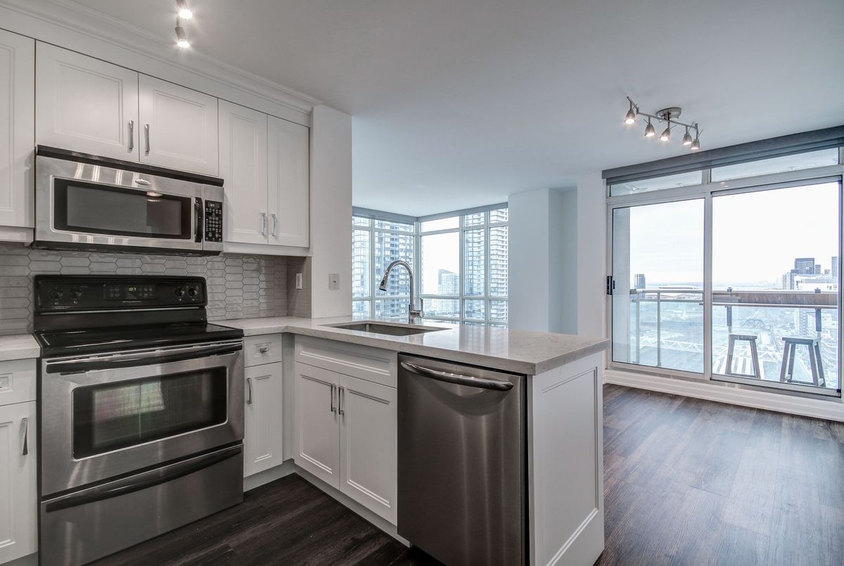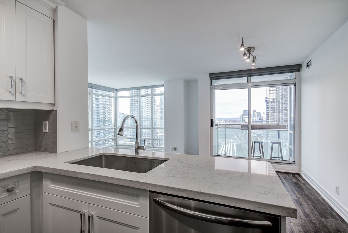 Bright & Spacious 2 Bedroom + Den, 2 Full Baths Condo Right On Front/Spadina. Spectacular SW and NW Views Of Lake And City. Fully Upgraded And Renovated Corner Unit With Custom Kitchen, Quartz Countertops, Luxurious Vinyl Flooring, Smooth Ceiling, Stainless Steel Appliances And Custom Window Blinds. Steps To Financial District, Restaurants, Parks, Rogers Center, CN Tower, TTC And PATH