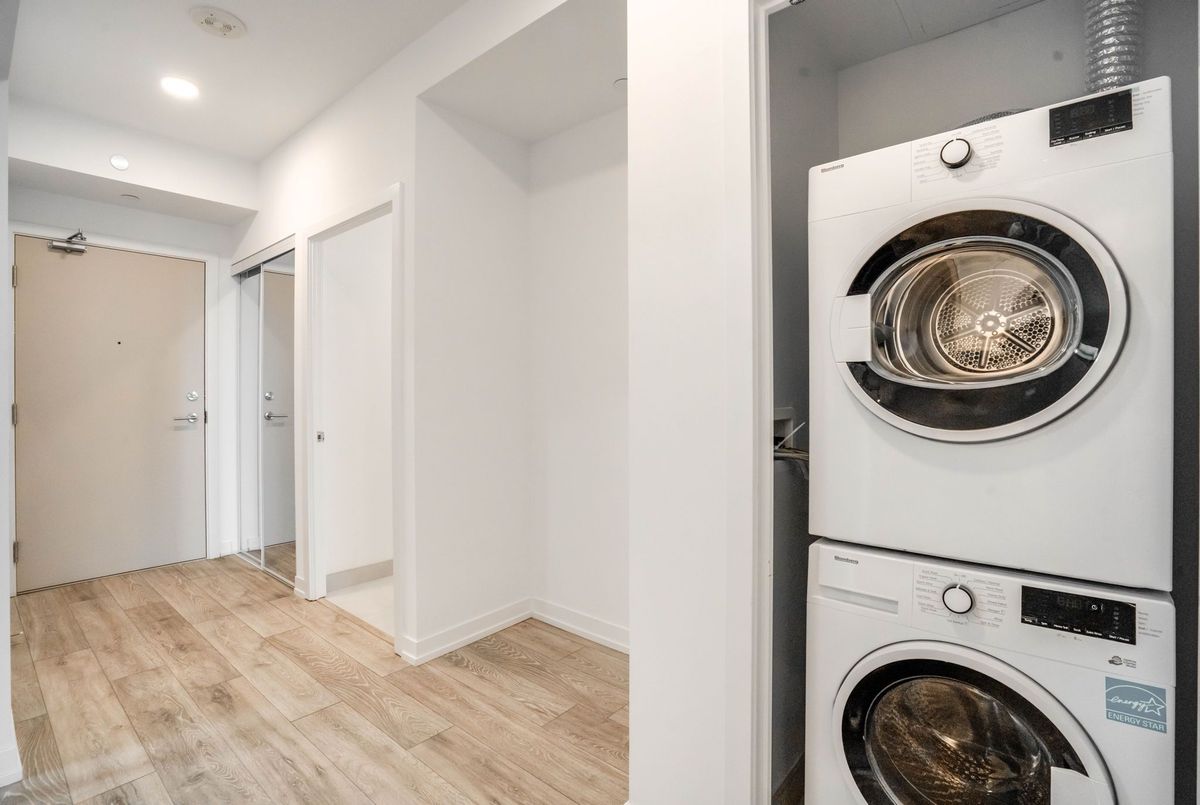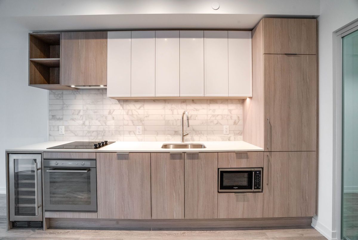 2 Bedroom, 2 Bathroom Condo, Trendy Neighborhood. Enjoy Open Concept Living with Gorgeous Kitchen featuring B/I Appliances & Wine fridge connecting to lovely Living Room with Walk out to Balcony and Beautiful Floor-to-Ceiling Windows offering lots of Natural Light and Views of the peaceful Neighborhood and Outdoor Common Areas. Primary Bedroom has double closet, 3 piece Ensuite. Second Bedroom has double closets and sliding doors ,Amenities include 24/7 Concierge, Well-Equipped Gym with Yoga And CrossFit Studios, Easy access to the 401, Trendy Shops, Cafes and Great Restaurants. Direct access to the future LRT line via the Lobby. Locker included, parking included