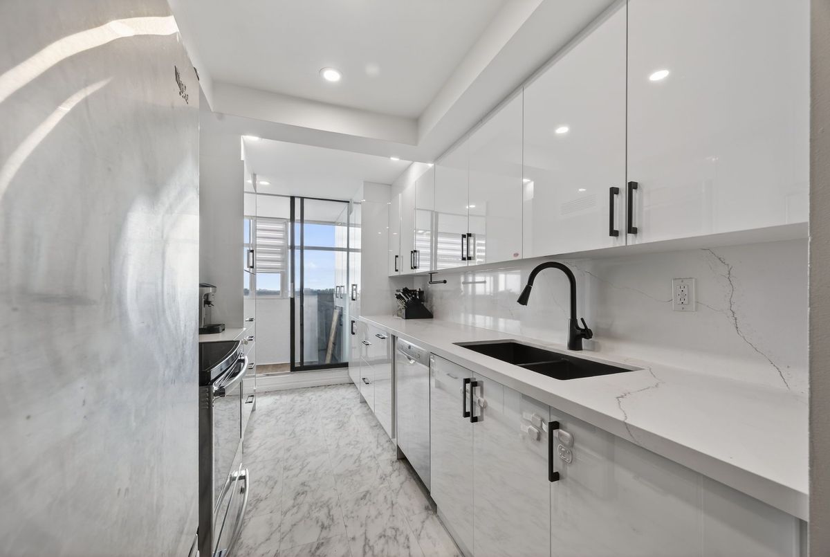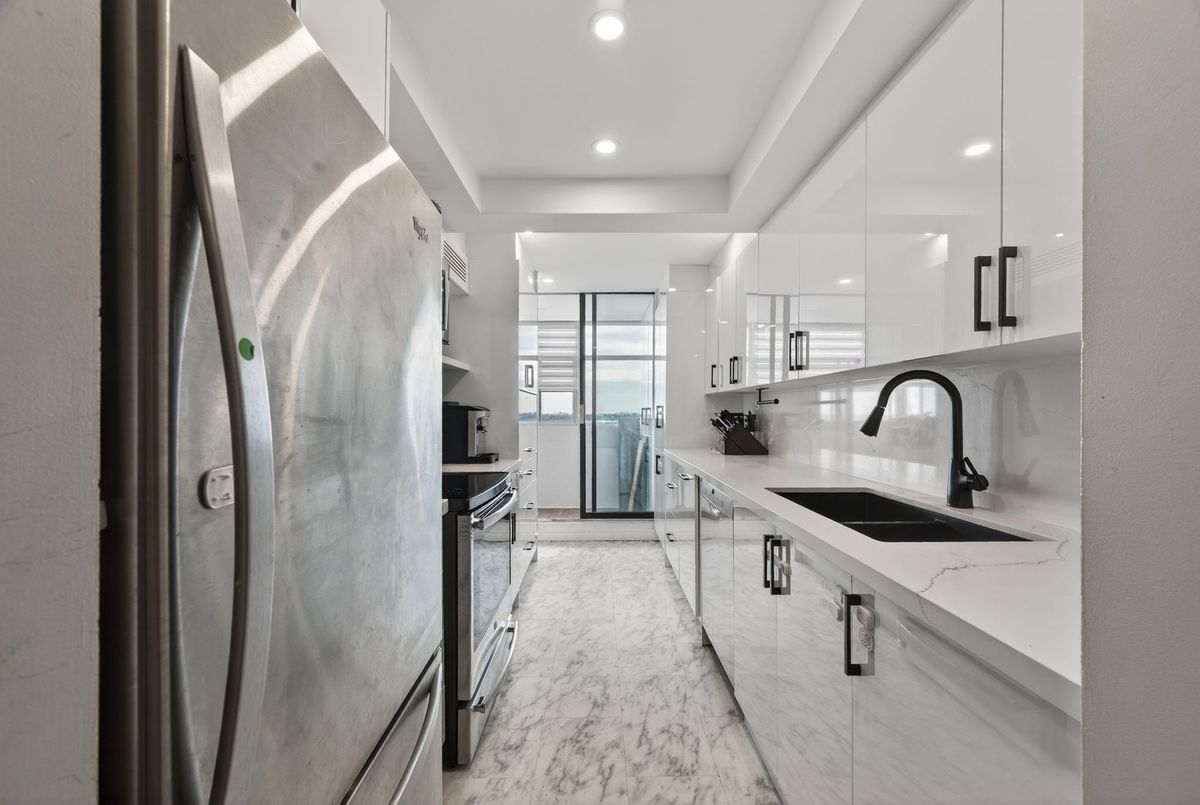 Welcome to your modern, sun-filled retreat at 100 Antibes Dr - a beautifully renovated 2-bed,2-bath condo offering sleek contemporary living with an abundance of space and light. This upgraded suite features a stylish modern kitchen, complete with clean finishes and afunctional eat-in layout, along with spotlights throughout for a bright and polished ambiance. Enjoy a large L-shaped living/dining area with laminate flooring, leading to a spacious south-facing solarium ideal for extra living space or a home office. Both bedrooms are generously sized, with the primary boasting great closet space and panoramic views. An ensuite storage room, ensuite laundry, and tons of natural light make this unit as practical as it is beautiful. The building is surrounded by lush green space and is steps to TTC, parks, community centres, great schools, shopping, and more. Maintenance fees include heat, water, and hydro-an incredibly all-inclusive package that makes living here effortless.
