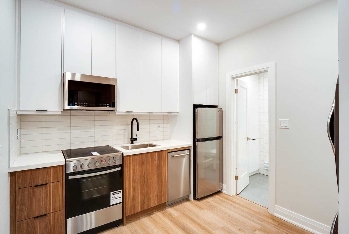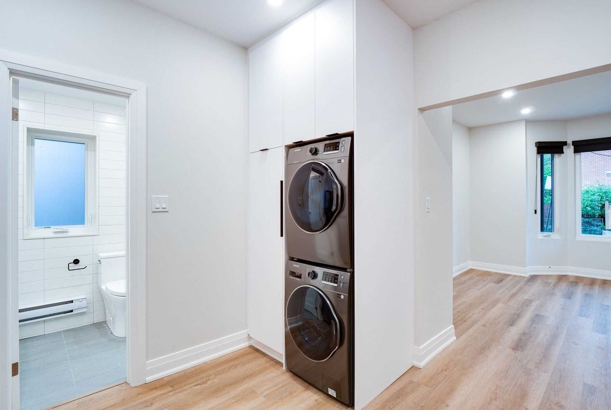 Newly renovated boutique building right in the heart of Wychwood! This stunning suite is thoughtfully designed with magazine-quality finishes, featuring sleek flooring, oversized black-framed windows that fill the space with natural light, and a contemporary kitchen complete with updated appliances, including a dishwasher. The spa-inspired bathroom showcases a glass-enclosed shower for a touch of luxury, while custom closet organizers and blinds provide both functionality and style. Enjoy the convenience of ensuite laundry and air conditioning in this exceptional space that truly has it all! You will love the location. Surrounded by great coffee shops, restaurants, and local shops, and just minutes to Wychwood Barns and its popular Saturday Farmers' Market. Enjoy nearby parks and walking routes, with easy access to the St. Clair streetcar and a short walk to the subway. Tenant pays utilities.