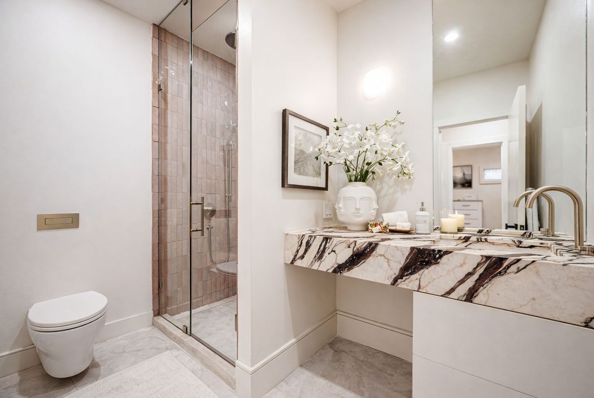 Stunning, fully renovated custom home in the heart of the Danforth, redesigned within the last three years with premium finishes and thoughtful upgrades throughout. This turnkey residence offers a perfect blend of modern comfort and timeless style in one of Toronto's most desirable neighbourhoods.The open-concept main floor features wide-plank white oak hardwood flooring, custom millwork, and a chef-inspired kitchen with Taj Mahal polished quartzite countertops, high-end stainless steel appliances, and a large centre island-ideal for everyday living and entertaining. Three spa-like bathrooms provide luxury at every turn. The main floor bath showcases imported Zellige Moroccan tile and a handcrafted Italian-made Viola marble sink. The second-floor primary ensuite features travertine marble finishes and a dual Italian-made sink vanity inspired by Kim Kardashian's signature design. Spacious upstairs bedrooms offer hardwood flooring throughout. The finished basement includes a separate walkout, flexible living space, and stylish vinyl flooring-perfect for in-law use, income potential, or a family recreation room. Extensive upgrades include a brand-new roof with new shingles (2024), a high-efficiency heat pump (2023), and a new water heater tank (2023).At the rear, a detached garage offers exceptional future value with permits and plans ready to go for a two-storey laneway home, a rare, shovel-ready opportunity. Ideally located in a prime Danforth pocket just steps to the subway, top-rated schools, restaurants, and shops. This home delivers luxury finishes, outstanding value, and long-term potential in a vibrant community. A rare opportunity that won't disappoint.