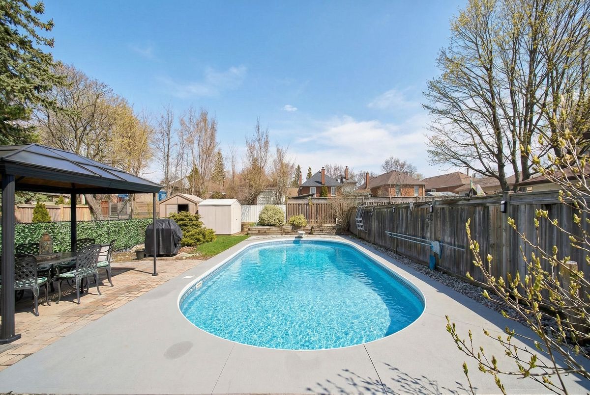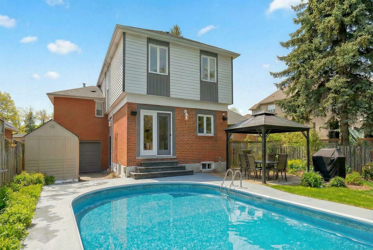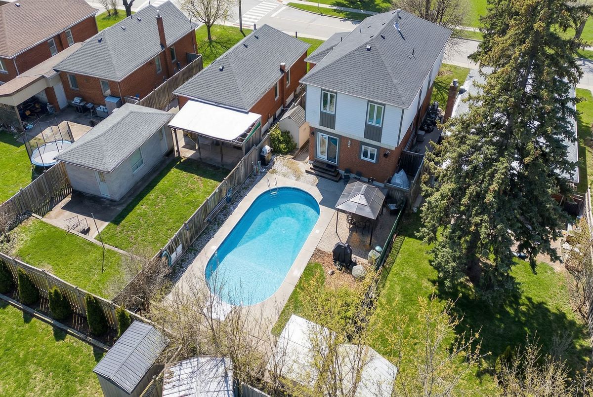 Welcome to 34 Edge Park Avenue - a rare, fully detached 6-bedroom, 5-bathroom home offering 2,950 sq ft of above-grade living space on an oversized 50 x 139 ft lot in the heart of Clairlea-Birchmount. Thoughtfully updated throughout and move-in ready. The main floor features hardwood floors, an open-concept living and dining area, and a fully renovated kitchen (2025) with granite countertops, stainless steel appliances, a breakfast bar, and a walk-out to the backyard. A split-level landing off the main floor offers a private bedroom with its own 3-piece ensuite with heated floors - ideal for in-laws, guests, or a home office. The upper level provides five well-proportioned bedrooms, including two spacious Italian inspired 3-piece washrooms. Your second-floor laundry and central vac adds everyday convenience. The finished basement includes a spacious rec room, 2-piece bath, and a separate side entrance - offering flexibility for extended family or additional living space. Outside, enjoy a fully fenced backyard with a newly upgraded in-ground pool (2025) and room to entertain. Single attached garage with new doors (2026) and 4-car driveway parking. You get the space and family feel of the Suburbs while being 15 minutes from central hot spots like The Beaches and 20 minutes from Yorkville.