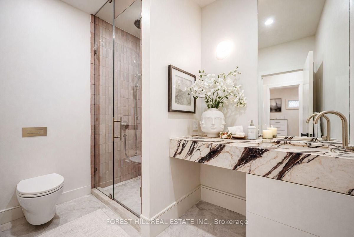 Stunning renovated custom home in the heart of the Danforth, redesigned within the last three years with premium finishes and thoughtful upgrades throughout. This turnkey residence offers a perfect blend of modern comfort and timeless style in one of Toronto's most desirable neighborhood's. The open-concept main floor features wide-plank white oak hardwood flooring, custom millwork, and a chef-inspired kitchen with Taj Mahal polished quartzite countertops, high-end stainless steel appliances, and a large centre island-ideal for everyday living and entertaining. Three spa-like bathrooms provide luxury at every turn. The main floor bath showcases imported Zellige Moroccan tile and a handcrafted Italian-made Viola marble sink. The second-floor primary ensuite features travertine marble finishes and a dual Italian-made sink vanity inspired by Kim Kardashian's signature design. Spacious upstairs bedrooms offer hardwood flooring throughout. The finished basement includes a separate walkout, flexible living space, and stylish vinyl flooring-perfect for in-law use, income potential, or a family recreation room. Extensive upgrades include a brand-new roof with new shingles (2024), a high-efficiency heat pump (2023), and a new water heater tank (2023).At the rear, a detached garage offers exceptional future value with permits and plans ready to go for a two-storey laneway home, a rare, shovel-ready opportunity. Ideally located in a prime Danforth pocket just steps to the subway, top-rated schools, restaurants, and shops. This home delivers luxury finishes, outstanding value, and long-term potential in a vibrant community. A rare opportunity that won't disappoint.