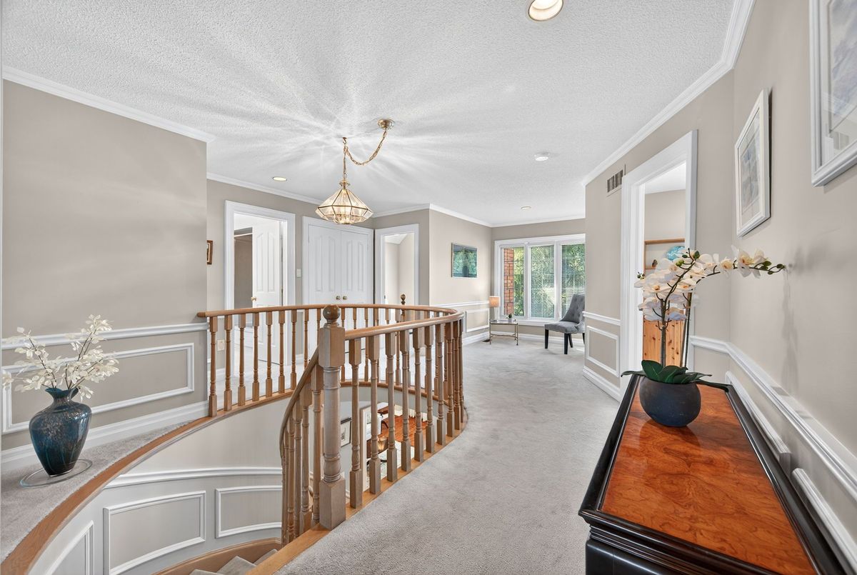 Welcome to this beautifully maintained 4-bedroom, 5-bathroom executive home located in the highly sought-after Aurora Highlands community. With over 3,178 sq ft above grade plus a fully finished basement, this home offers an abundance of space, comfort, and modern updates in one of Auroras most exclusive neighbourhoods. Set on a tree-lined street surrounded by landscaped gardens, the property boasts exceptional curb appeal and a serene backyard oasis complete with a large deck, ideal for relaxing or entertaining. Step inside to a thoughtfully designed layout featuring a renovated kitchen with a central island, stainless steel appliances, and ample cabinetry. The adjacent family room is warm and inviting, highlighted by a gas fireplace. Spacious principal rooms, including a formal living and dining area, provide elegant spaces for everyday living and special gatherings. Upstairs, you'll find four generous bedrooms, including a spacious primary suite with a private ensuite bath. The finished basement adds incredible versatility with a large recreation room, workshop, additional bathroom, and storage ideal for hobbyists, multigenerational living, or working from home. Key upgrades include a newer furnace (2022), AC and humidifier (2025), newer washer/dryer(2022), roof with a 35-year transferable warranty (installed ~2010), offering peace of mind for years to come. Located within walking distance to top-rated schools, and just minutes from shopping, parks, transit, and major highways, this is an ideal home for families seeking space, quality, and a prestigious address. Don't miss the opportunity to make this exceptional home yours welcome to life on Corner Ridge