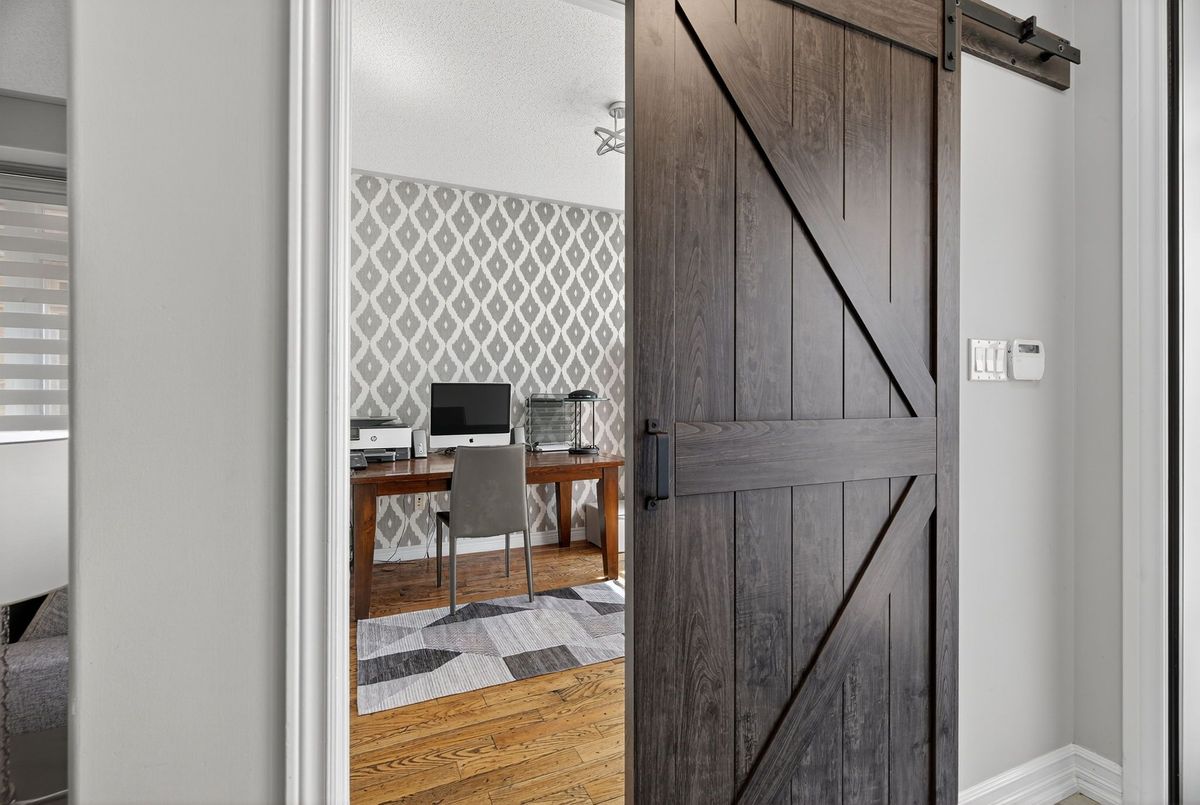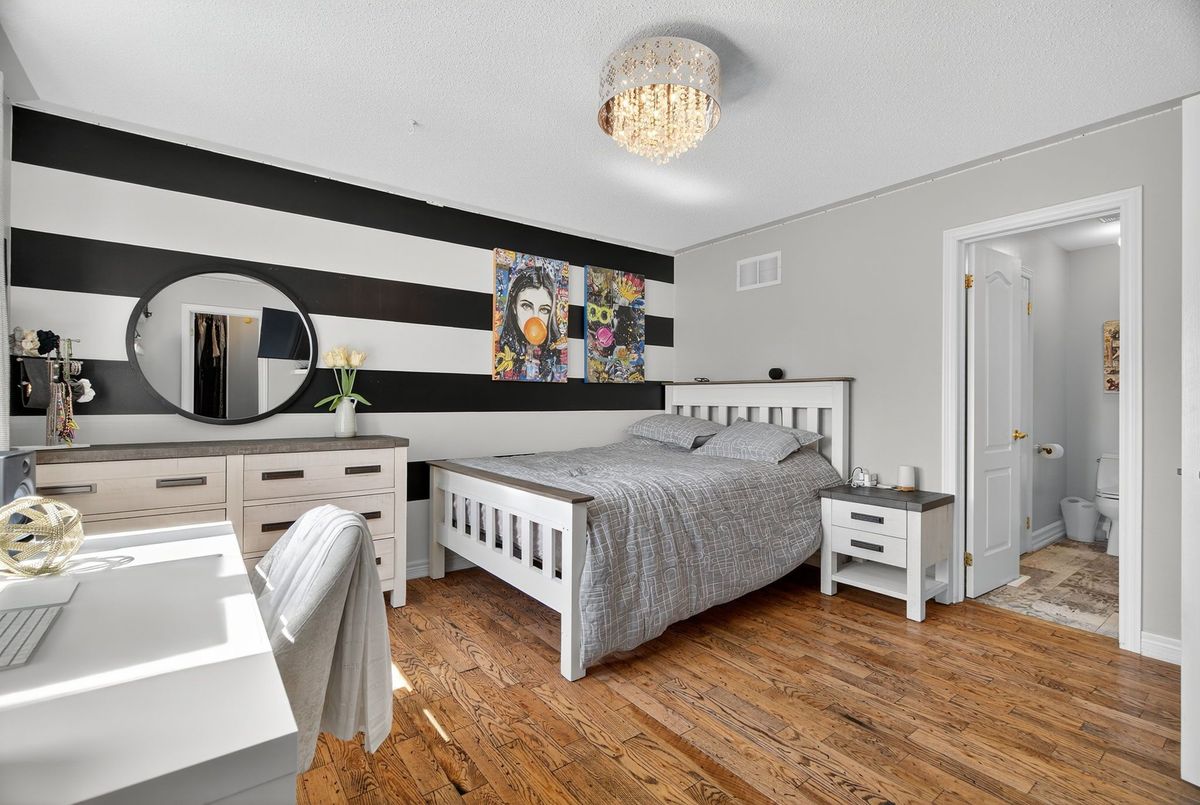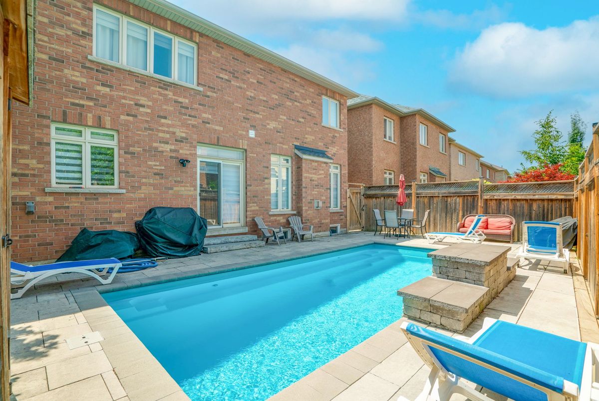This sought-after Aspen Ridge Verona Model in the heart of Thornhill Woods offers the perfect balance of elegance, comfort, and lifestyle. Ideally located between the Thornhill Woods Community Centre and the neighborhoods wooded trail network, this home provides both convenience and natural beauty right at your doorstep. With approximately 2,800 square feet plus a fully finished basement, this residence has been meticulously upgraded from top to bottom and presents a rare opportunity on a highly coveted street. Inside, you'll find designer finishes throughout including distressed barnwood floors, rounded corners, 18x36 tiles, quartz and marble counters, a glass rain shower, and a freestanding tub. Custom details such as closet built-ins, zebra blinds, stairway runners, and a gas fireplace add style and function, while a 200 inch home theatre screen with 4K projector delivers the ultimate entertainment experience. Recent updates include a widened driveway, new roof, upgraded Low-E2 windows, new A/C, high-efficiency two-stage furnace, humidifier, high-efficiency water heater, 200-amp service, and a smart home package with Wi-Fi thermostat, Wi-Fi garage door openers, alarm system, Ring doorbell, and rear yard cameras. Added conveniences include in-wall retractable central vac, washer and dryer, fridge, dishwasher, and a. The finished basement with newly installed flooring expands the living space, while the backyard oasis with pool and cabana creates the perfect setting for entertaining or relaxing weekends. Every detail has been thoughtfully curated, making this home a true standout in Thornhill Woods.
