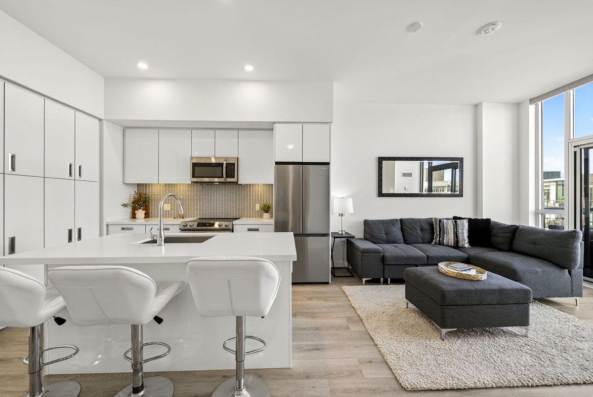 Fabulous Penthouse at Friday Harbour Resort. Discover the perfect blend of style, comfort, and modern convenience in this spacious 1-bedroom penthouse suite at the sought-after Highpoint building in Friday Harbour. This fully furnished condo offers a bright open-concept living space with a fully equipped kitchen, ideal for everyday living or entertaining. A private bedroom retreat featuring a queen bed. Additional sleeping space with a queen-sized pull-out sofa in the living room. Luxurious balcony with sunset views overlooking the courtyard, pool, and Lake Simcoe with one parking space. Enjoy access to an incredible array of resort-style amenities, including, 200 acres of forest trails, outdoor pool and beach access. Enjoy the luxury of having the LCBO, shops and restaurants conveniently located on the boardwalk. Available for short-term or long-term rental.