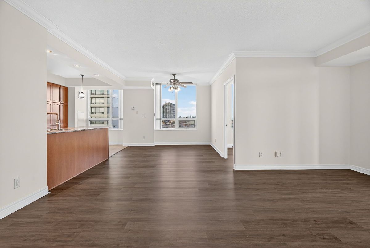 Welcome to 100 Promenade Circle! Beautifully updated and freshly painted, this spacious 2-bedroom + den condo offers 1,300 sq ft of comfortable, well-designed living in one of Vaughan's most desirable communities. Step inside to find brand-new flooring, a bright open-concept layout, and a versatile den perfect for a home office, reading nook, or guest space. The generous living/dining area walks out to a private balcony, ideal for your morning coffee or evening unwind. The suite includes 1 parking space and 1 locker for added convenience. Located in an unbeatable spot - just steps to Promenade Mall, restaurants, transit, parks, synagogues, and all daily amenities. Easy access to highways and nearby community centres makes this the perfect place to call home. A spacious, move-in-ready condo in a prime location - don't miss it!