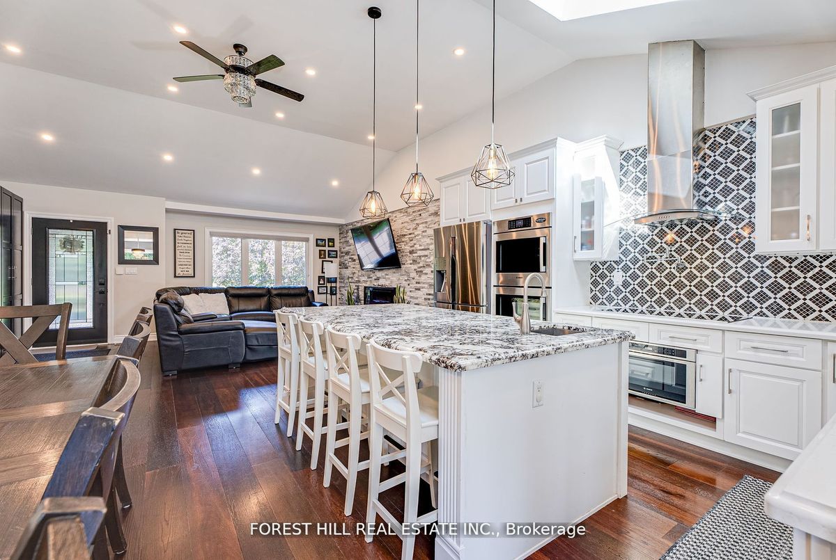 Set on over 1.5 acres in Innisfil, this stunningly upgraded 4+1 bedroom, 3 bathroom side-split home combines modern living with serene privacy. The open-concept main level is filled with natural light from expansive windows and skylights, creating a seamless flow between the living, dining, and kitchen areas. The chef-inspired kitchen boasts high-end appliances and premium finishes, perfect for both everyday living and entertaining. The lower-level split offers a warm and inviting family room with a walkout to the backyard, and a separate entrance while the finished basement provides additional living space, ideal for extended family, guests, or potential income opportunities. Beautiful hardwood flooring extends throughout the home, adding a timeless touch. Brand New Furnace! (2025) A partially finished guest house with a walkout to its own deck adds even more potential. Outside, the expansive backyard offers endless possibilities for outdoor living, gardening, or simply enjoying the peaceful setting. This is a rare opportunity to own a property that truly blends luxury, versatility, and privacy.