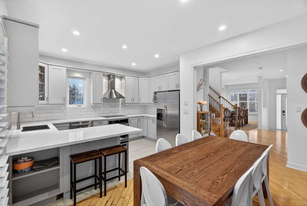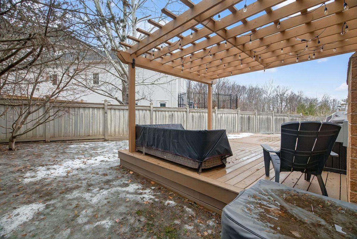 Welcome to 64 Canelli Heights Court, a beautifully upgraded family home located in the heart of a quiet, child-friendly court in the highly sought-after Thornhill Woods community, and zoned for Thornhill Woods Public School. This spacious 4+1 bedroom, 4-bathroom home sits on a rare pie-shaped lot and partially sides onto a ravine, offering added privacy and a natural backdrop. The main and second floors feature hardwood flooring throughout, complemented by a renovated kitchen ideal for both family living and entertaining. A fully renovated second-floor bathroom adds a modern, turnkey feel. The backyard is designed for enjoyment, featuring a 2-year-old high-end composite deck with pergola, perfect for outdoor dining and relaxation. The finished basement includes a large recreation room and an additional bedroom, while a separate side entrance provides excellent potential for a future income-generating basement apartment or in-law suite. With over $100,000 in quality renovations, this move-in-ready home offers space, upgrades, and an unbeatable court location in one of Thornhill Woods' most desirable family pockets.
