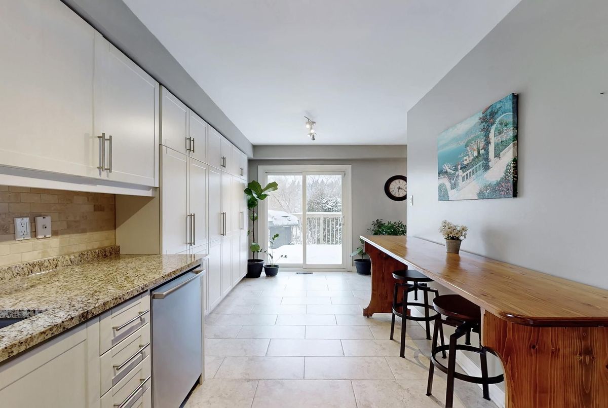 Rare end-unit townhome on a quiet, family-friendly court, backing and siding onto a scenic ravine for exceptional privacy. Features three large bedrooms, all with walk-in closets, offering space and storage rarely found in townhome living.The main level offers a bright open-concept living and dining area with ravine views, plus a large eat-in kitchen with ample pantry storage and a walk-out to a 12' x 18' deck, ideal for entertaining. The finished walk-out basement includes a spacious rec room and full bathroom, providing excellent additional living space. Check out virtual tour https://www.winsold.com/tour/441558