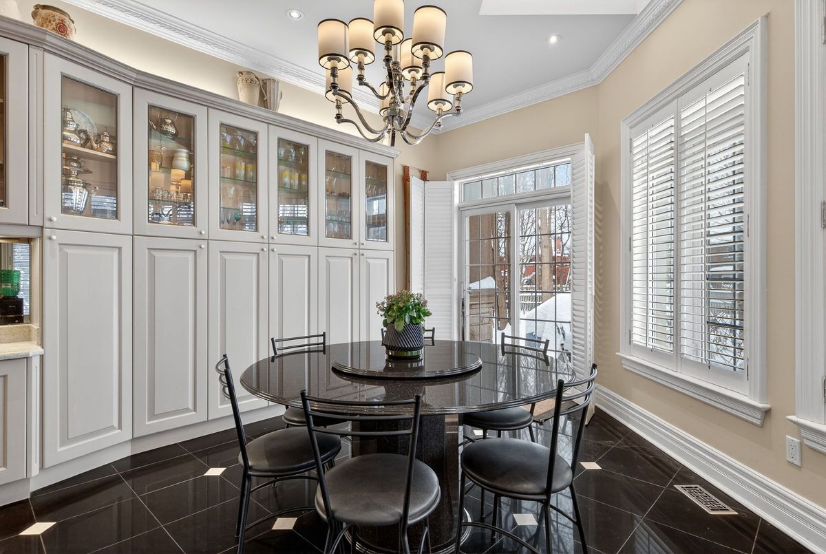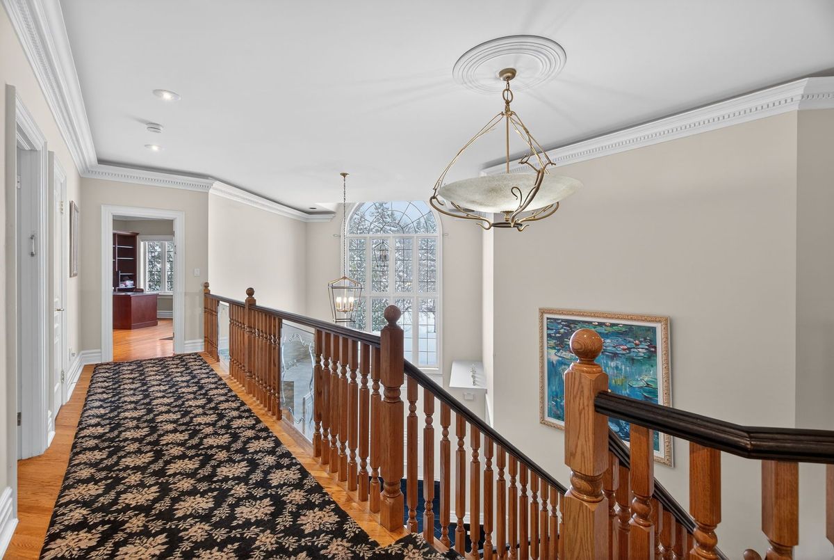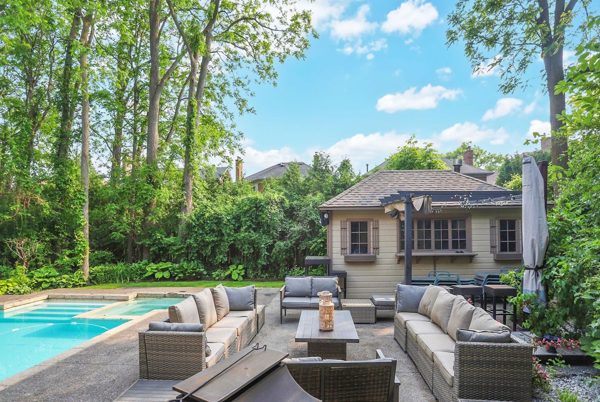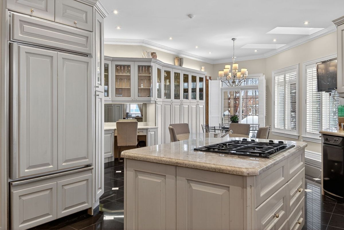 Welcome to 161 Renaissance Court, an exceptional and truly rare offering on a quiet, private cul-de-sac recognized as one of the most prestigious streets in Thornhill and the entire GTA. Custom-built to the highest standards of craftsmanship, this grand residence sits on one of the largest irregular, pie-shaped, fully treed lots in all of Thornhill, boasting over 228 feet of width at the rear and offering remarkable privacy and scale. With approximately 10,000 sq. ft. of living space (6,650 sq. ft. above grade plus a 3,141 sq. ft. finished basement), the home features 5 spacious bedrooms and 7 bathrooms, soaring 10-foot ceilings on the main level, a dramatic cathedral foyer with picture window glass entry, and two main-floor washrooms. Designed for both luxury and functionality, the expansive layout includes a potential main-floor in-law suite, a second service staircase, open-concept principal rooms, and quality finishes throughout, including 8-foot solid doors, granite floors, and a massive chef's kitchen with an oversized island. The sun-filled southwest-facing backyard is a true private retreat, highlighted by a spectacular in-ground swimming pool, spill-over hot tub and spacious Cabana/change room, surrounded by mature trees-perfect for entertaining and family living. Completing the home are a three-car garage, circular interlocked driveway, and an unbeatable location ideal for large families looking to raise their children in Thornhill's most sought-after community, just a short walk to Westmount Collegiate Institute, Chabad Flamingo, and close to top-ranked French Immersion and Arts programs, offering an unmatched combination of space, privacy, luxury, and lifestyle.