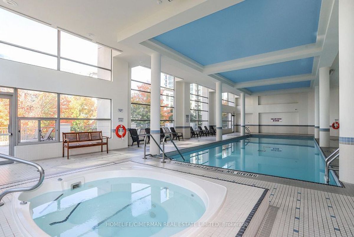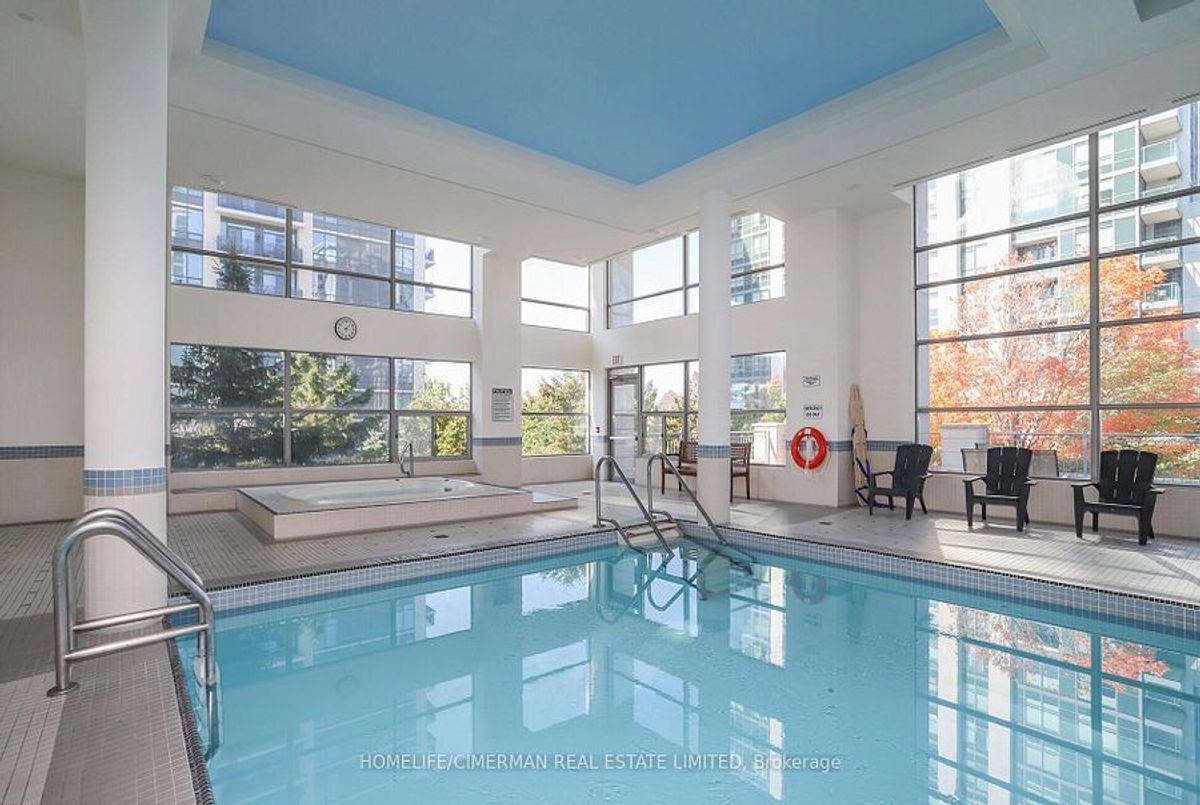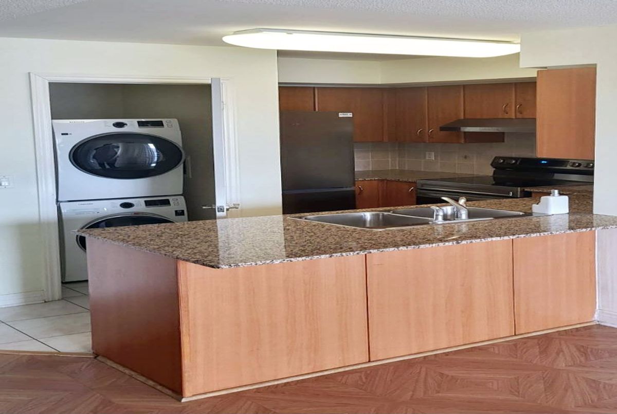 Very Bright and Spacious Two Bedroom + Den, Two Bathroom Unit in The Heart of Thornhill. Open Concept Functional Split Layout. Open Concept Kitchen with new 2026 Stainless steel appliances. Granite Countertop. Newer Washer and Dryer. Large Balcony Overlooking South Exposure full of natural light! One Parking and One Locker Included! Carpet FREE. Amenities: Pool, Gym, Jacuzzi, Sauna, Party & Game Room! Minutes To Promenade Mall, Public Transit, Shopping, Retail, Disera Village, Zoned For High Reputation Schools, Highway 7 & 407!