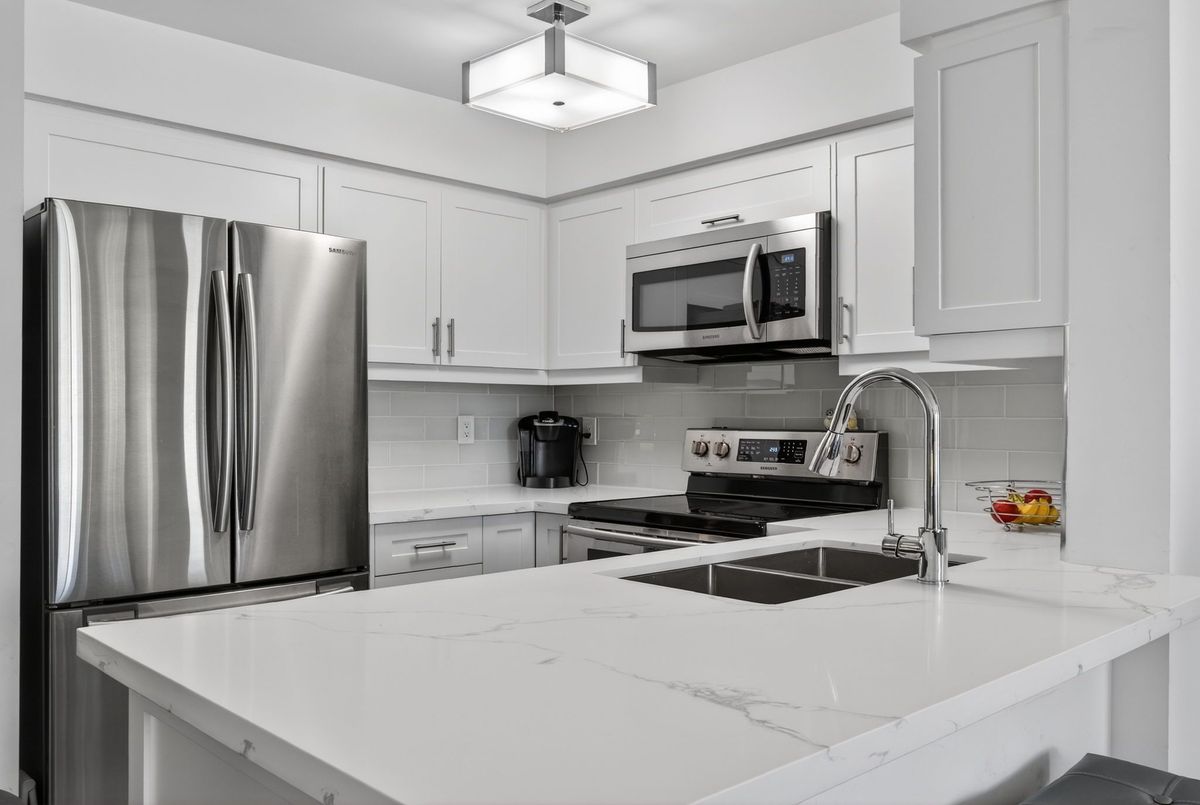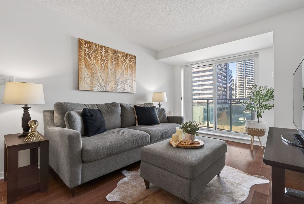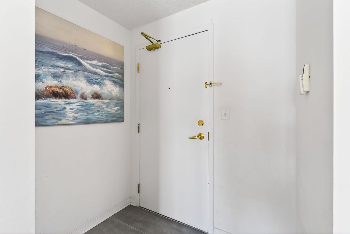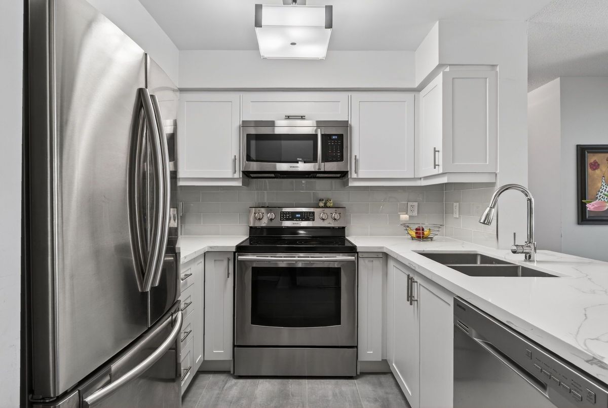 Welcome to this beautifully updated, spacious open-concept 1-bedroom, 1-bathroom suite offering comfortable and modern living at its finest. This stunning home features a beautifully updated custom kitchen renovated from top to bottom, showcasing gorgeous custom cabinetry, sleek quartz countertops, stainless steel appliances, and ceramic flooring throughout the kitchen area. The open-concept layout flows seamlessly into the bright and inviting living and dining areas, perfect for entertaining or relaxing in comfort.Engineered hardwood flooring runs throughout the suite, adding warmth and a seamless flow from room to room. The large primary bedroom offers generous space and features an oversized closet, providing plenty of storage. A convenient shoe closet at the entry adds practical storage and helps keep the space organized and clutter-free. Enjoy premium building amenities including a newly updated fitness facility, 24-hour security, and concierge service for added convenience and peace of mind. Ideally located within walking distance to shops, restaurants, and public transit, this home offers the perfect blend of style, comfort, and accessibility.
