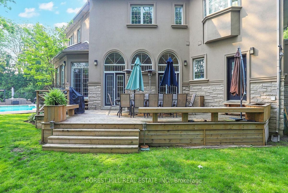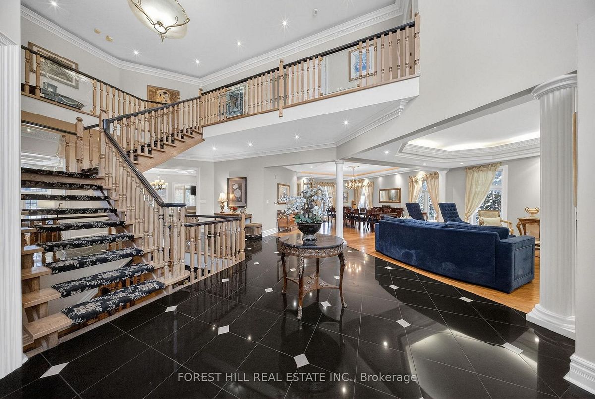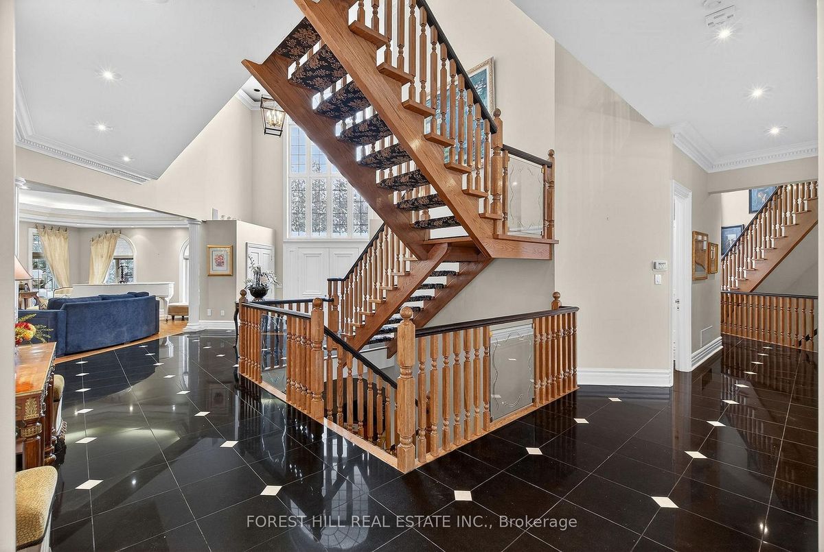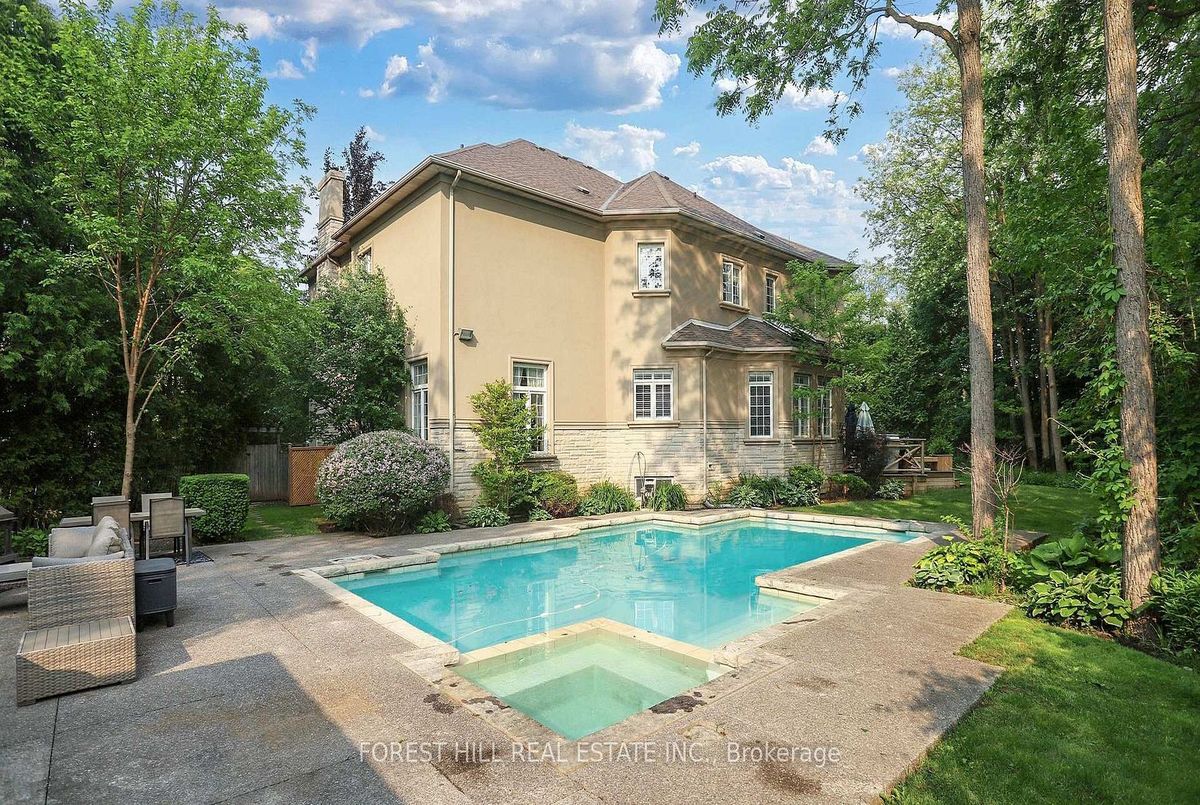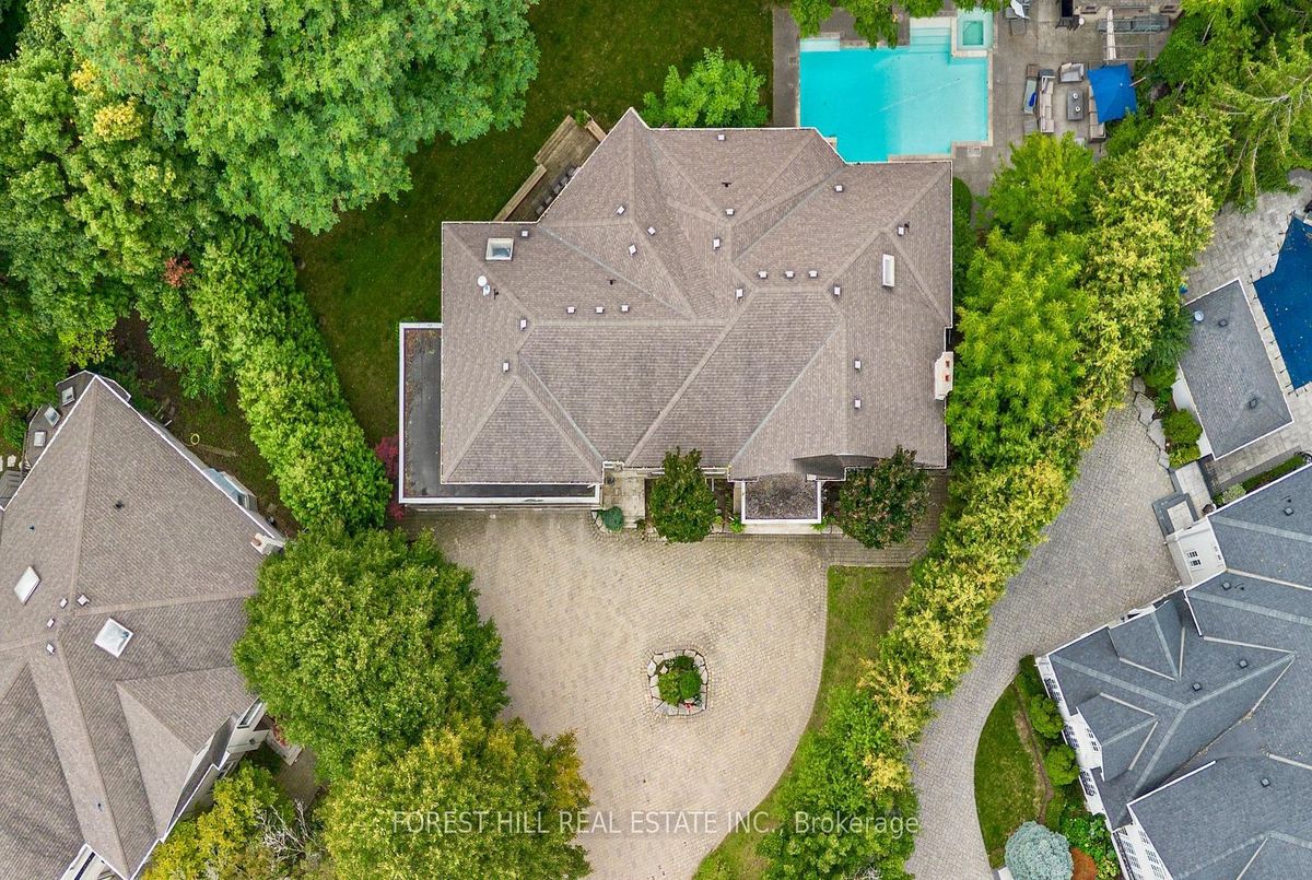Welcome to 161 Renaissance Court, an exceptional and truly rare offering on a quiet, private cul-de-sac recognized as one of the most prestigious streets in Thornhill and the entire GTA. Custom-built to the highest standards of craftsmanship, this grand residence sits on one of the largest irregular, pie-shaped, fully treed lots in all of Thornhill, boasting over 228 feet of width at the rear and offering remarkable privacy and scale. With approximately 10,000 sq. ft. of living space (6,650 sq. ft. above grade plus a 3,141 sq. ft. finished basement), the home features 5 spacious bedrooms and 7 bathrooms, soaring 10-foot ceilings on the main level, a dramatic cathedral foyer with picture window glass entry, and two main-floor washrooms. Designed for both luxury and functionality, the expansive layout includes a potential main-floor in-law suite, a second service staircase, open-concept principal rooms, and quality finishes throughout, including 8-foot solid doors, granite floors, and a massive chef's kitchen with an oversized island. The sun-filled southwest-facing backyard is a true private retreat, highlighted by a spectacular in-ground swimming pool, spill-over hot tub and spacious Cabana/change room, surrounded by mature trees-perfect for entertaining and family living. Completing the home are a three-car garage, circular interlocked driveway, and an unbeatable location ideal for large families looking to raise their children in Thornhill's most sought-after community, just a short walk to Westmount Collegiate Institute, Chabad Flamingo, and close to top-ranked French Immersion and Arts programs, offering an unmatched combination of space, privacy, luxury, and lifestyle.