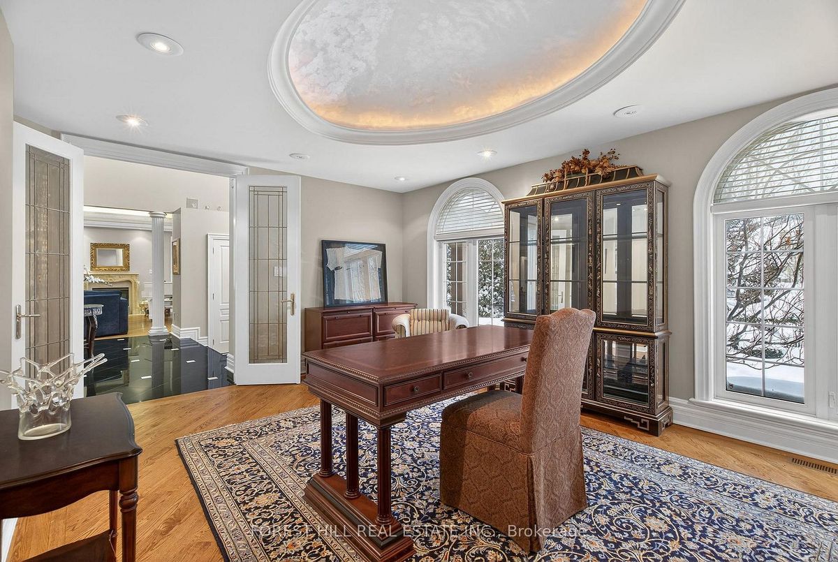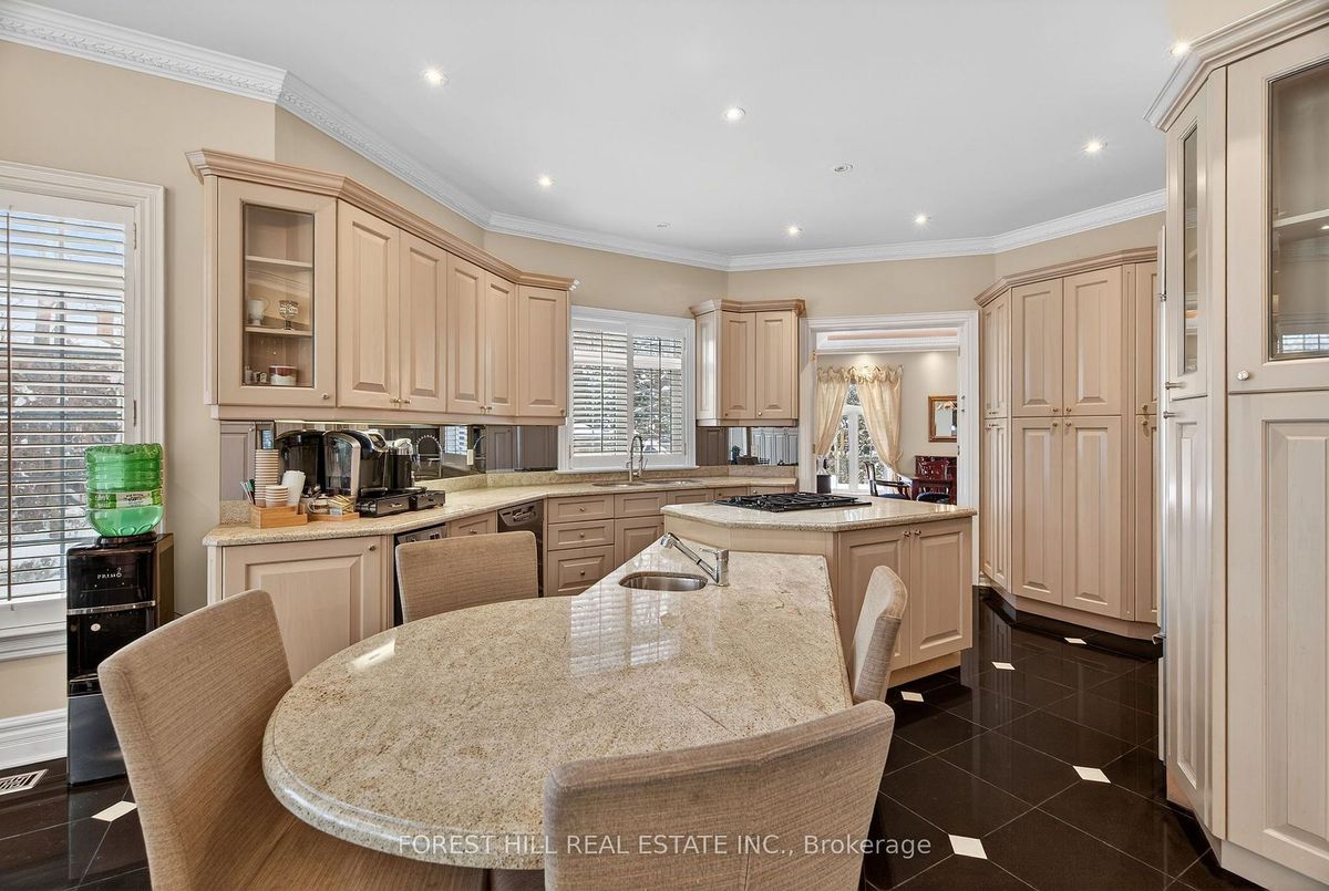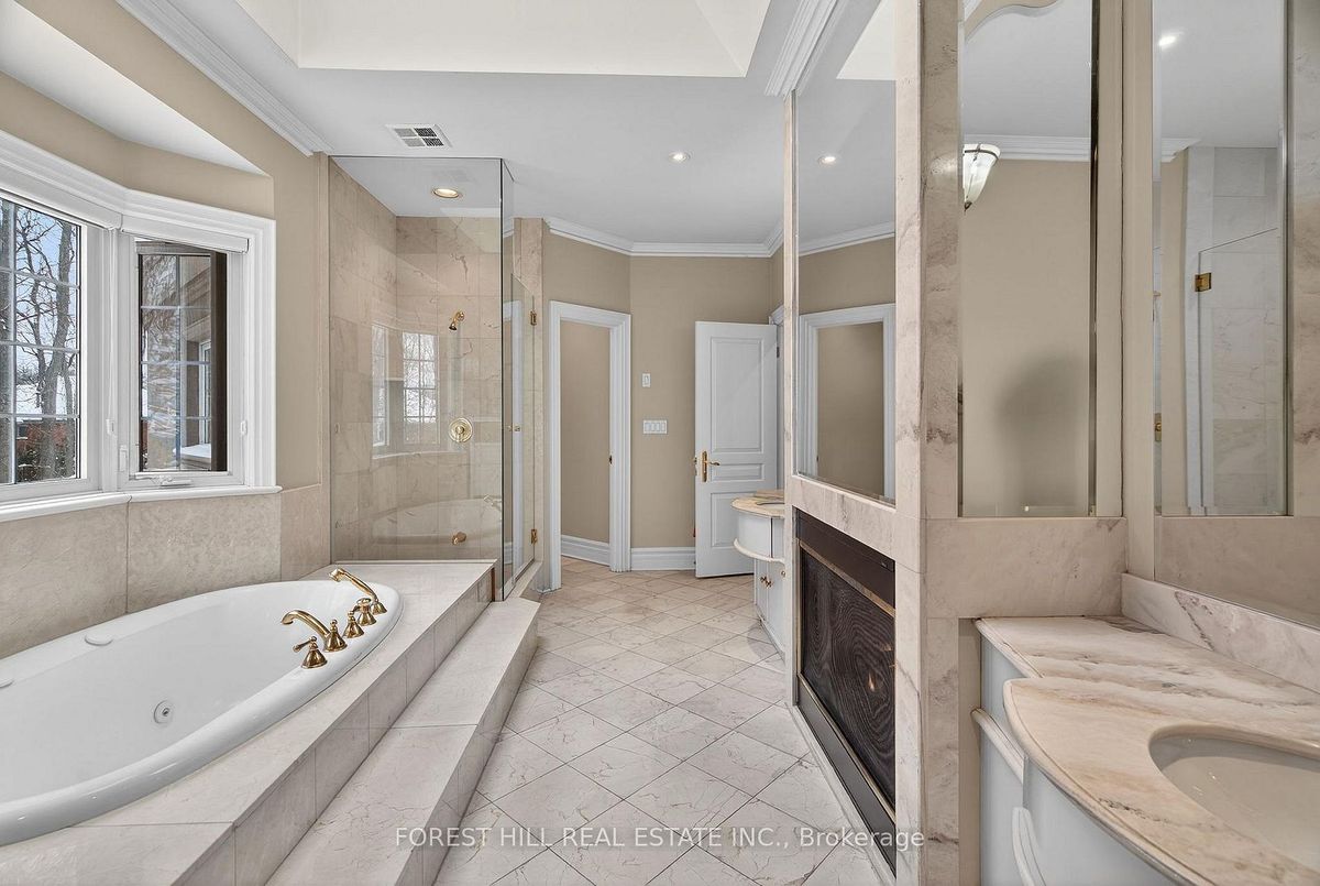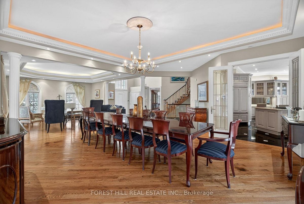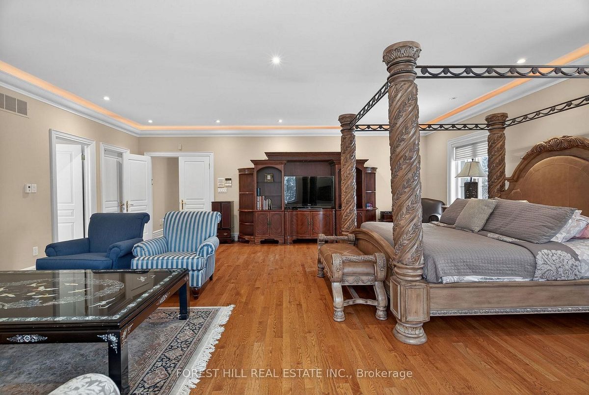 Welcome to 161 Renaissance Court, an exceptional and truly rare offering on a quiet, private cul-de-sac recognized as one of the most prestigious streets in Thornhill and the entire GTA. Custom-built to the highest standards of craftsmanship, this grand residence sits on one of the largest irregular, pie-shaped, fully treed lots in all of Thornhill, boasting over 228 feet of width at the rear and offering remarkable privacy and scale. With approximately 10,000 sq. ft. of living space (6,650 sq. ft. above grade plus a 3,141 sq. ft. finished basement), the home features 5 spacious bedrooms and 7 bathrooms, soaring 10-foot ceilings on the main level, a dramatic cathedral foyer with picture window glass entry, and two main-floor washrooms. Designed for both luxury and functionality, the expansive layout includes a potential main-floor in-law suite, a second service staircase, open-concept principal rooms, and quality finishes throughout, including 8-foot solid doors, granite floors, and a massive chef's kitchen with an oversized island. The sun-filled southwest-facing backyard is a true private retreat, highlighted by a spectacular in-ground swimming pool, spill-over hot tub and spacious Cabana/change room, surrounded by mature trees-perfect for entertaining and family living. Completing the home are a three-car garage, circular interlocked driveway, and an unbeatable location ideal for large families looking to raise their children in Thornhill's most sought-after community, just a short walk to Westmount Collegiate Institute, Chabad Flamingo, and close to top-ranked French Immersion and Arts programs, offering an unmatched combination of space, privacy, luxury, and lifestyle.