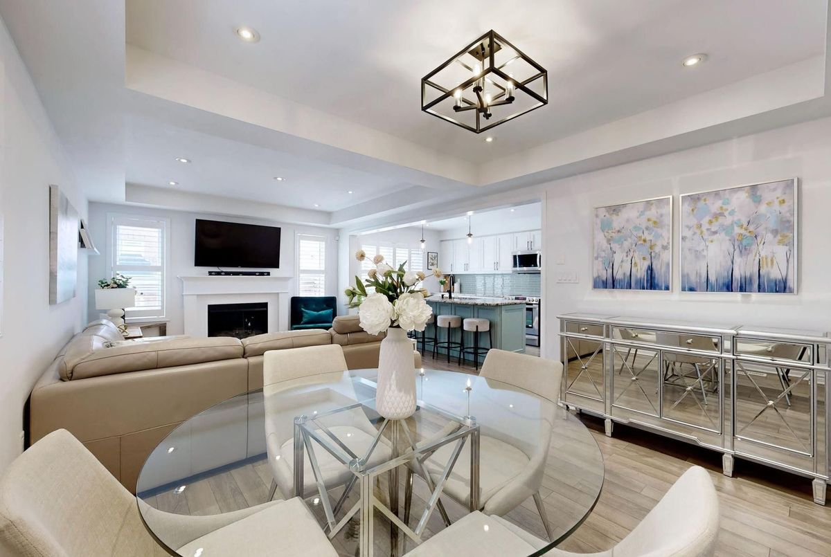 Beautiful end-unit townhome in Aurora featuring a bright open-concept layout. Custom kitchen with large island, main floor office, and convenient 2nd floor laundry. Finished basement offers additional living space, while the private interlock patio is perfect for outdoor enjoyment. Move-in ready in a fantastic location!