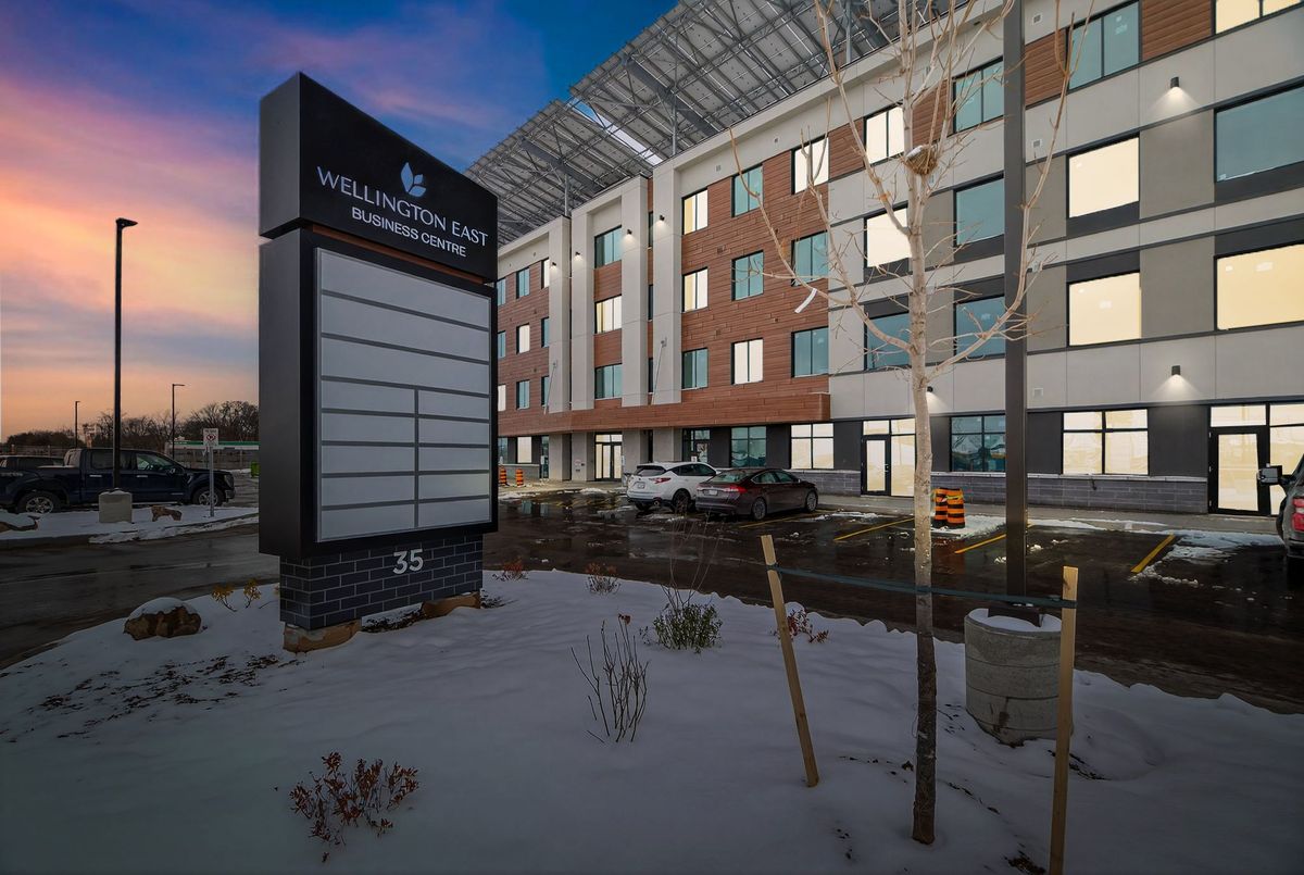 Discover A Rare Opportunity To Acquire A Fully Leased, Income-Producing Commercial Asset In Howland Green's Wellington East Business Centre-An Innovative, Energy-Positive Development Designed For Long-Term Stability And Reduced Operating Costs.This 1,014 Sq. Ft. Modern Unit Is Secured By A Strong Long-Term Tenant With A 5 + 5 + 5 Year Lease In Place, Offering Predictable Cash Flow With Scheduled Rental Increases. The Lease Structure Provides Investors With Exceptional Security And Built-In Growth, Making This An Ideal Hands-Off Investment In Today's Uncertain Market.Part Of A Forward-Thinking, Energy-Positive Building That Produces More Energy Than It Consumes, The Property Benefits From Significantly Lower Operating Costs-Enhancing Net Returns And Long-Term Value. The Building Features Premium Construction And Design, Including Geothermal Heating And Cooling, Two Elevators, Secure 24/7 FOB Access, And Professionally Finished Common Areas.The Unit Itself Is Fully Built Out With High-End Finishes, Including Soaring Ceilings, Pot Lights, Oversized Windows, A Two-Piece Washroom, And Two Dedicated Underground Parking Spaces-Providing Strong tenant appeal and long-term retention.Strategically Zoned Employment Business Park, This Asset Supports A Wide Range Of Uses, Ensuring Continued Demand And Flexibility For Future Leasing.In A World Of Economic Uncertainty, This Property Offers A Safe, Stable Investment Backed By A Long-Term Lease, Gradual Rental Growth, And A Future-Focused, Cost-Efficient Building.A Turnkey Opportunity Delivering Security, Sustainability, And Strong Returns. Don't Miss This Opportunity!