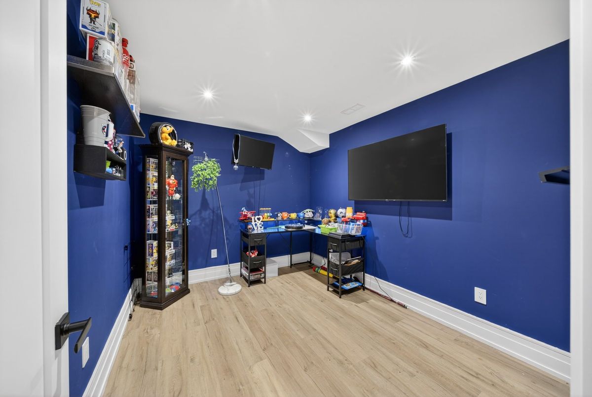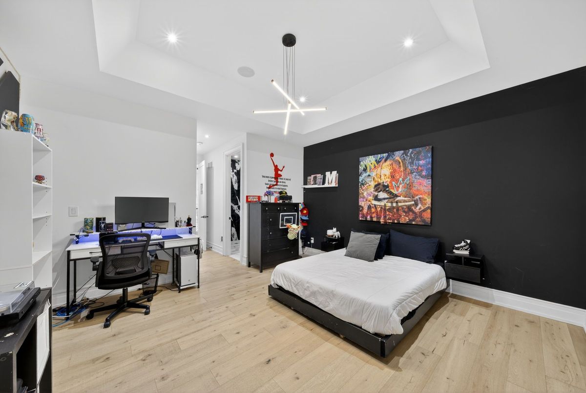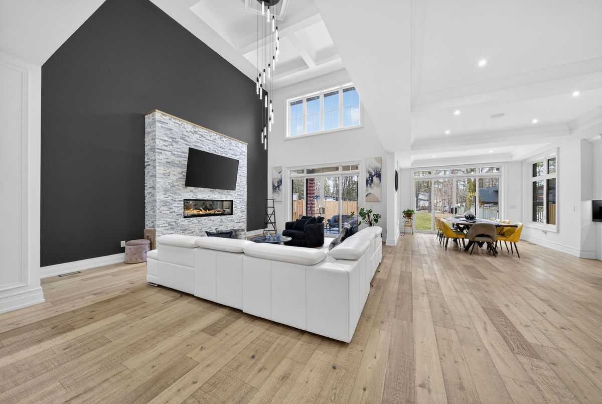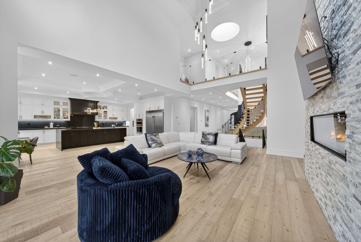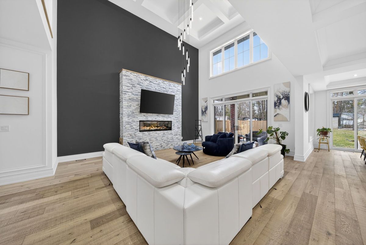 Welcome to 2019 Lilac Dr, an absolutely stunning 4+1 bedroom residence in Alcona, just minutes from the beach. Built in 2022 and situated on a premium lot, this exceptional home offers over 6,000 sq. ft. of total living space, combining sophisticated design, superior craftsmanship, and unparalleled attention to detail. From the moment you arrive, you're greeted by a beautifully interlocked driveway, natural stone and precast exterior, and a solid Italian wood front door. Inside, custom millwork, designer lighting, pot lights, and wide-plank hardwood flooring elevate every space. The custom chef's kitchen is a true showpiece, featuring high-end appliances, a large centre island, and an open-concept layout that flows seamlessly into the spacious family room-perfect for both entertaining and everyday living. Upstairs, all four generously sized bedrooms offer their own private ensuite bathrooms and custom walk-in closets with built-in organizers, delivering comfort and privacy for the entire family. The primary suite is a luxurious retreat, complete with a two-sided fireplace, private walk-out balcony, oversized walk-in closet, and a spa-inspired 5-piece ensuite. A stunning main floor living room with soaring 19-foot ceilings overlooks the backyard and is filled with natural light. The finished lower level adds incredible versatility, featuring an additional bedroom, playroom, office, a beautiful home theatre, and a spacious recreation area-ideal for extended family, guests, or a home gym-with a walk-up to the backyard. Located in the heart of Alcona, just minutes to the beach, parks, nature trails, amenities, and Friday Harbour Resort.