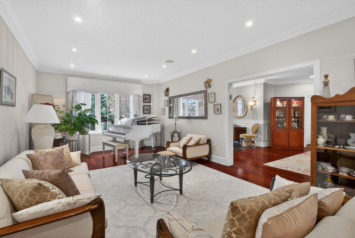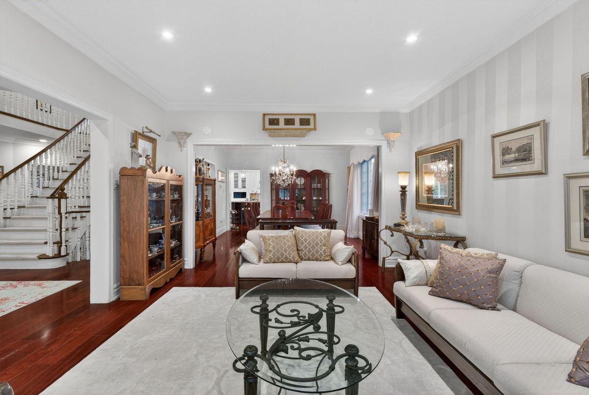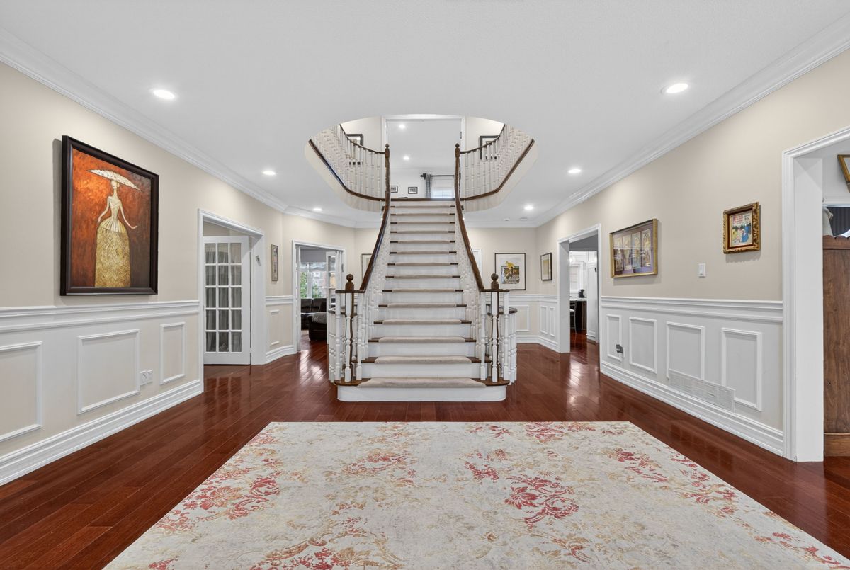 A rare opportunity to own one of the largest two-storey homes (nearly 6,000 sqft. of total living space) in Heritage Estates, Mill Pond-set on a premium pie-shaped lot widening to almost80 ft at the rear on one of the area's most sought-after streets. This impressive residence offers approx. 4,000 sqft. above grade plus a fully finished ~1,900sqft. basement. Featuring 4+2 bedrooms and 6 bathrooms, its floor plan is suited for growing families and refined living. The main floor showcases 9-ft ceilings and a well-designed, functional layout, including a spacious home office and a magnificent Scarlett O'hara staircase. The chef-inspired kitchen is equipped with top-of-the-line stainless steel appliances, with direct access to the deck and seamless flow to the backyard-perfect for everyday living and entertaining. The primary suite is a luxurious retreat, offering generous space, an oversized walk-in closet, and a fully renovated spa-like ensuite with a Bain Ultra bathtub which offers superior comfort and hydro-thermo massage experience, private sauna, double vanity, makeup station, and premium finishes. One secondary bedroom also features its own private ensuite. this house also offers two additional generously sized bedrooms with oversized windows on the second floor. The finished basement adds exceptional flexibility with 2 additional bedrooms (one with heated-floor ensuite, one ideal as a bedroom or gym), a separate entrance, powder room with heated floors, and kitchen rough-ins-ideal for in-law or extended family living. Set on over 7,000 sqft., the south-facing backyard is beautifully landscaped and framed by mature trees, offering outstanding privacy and a serene setting for outdoor enjoyment.