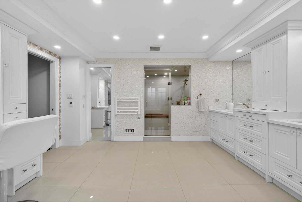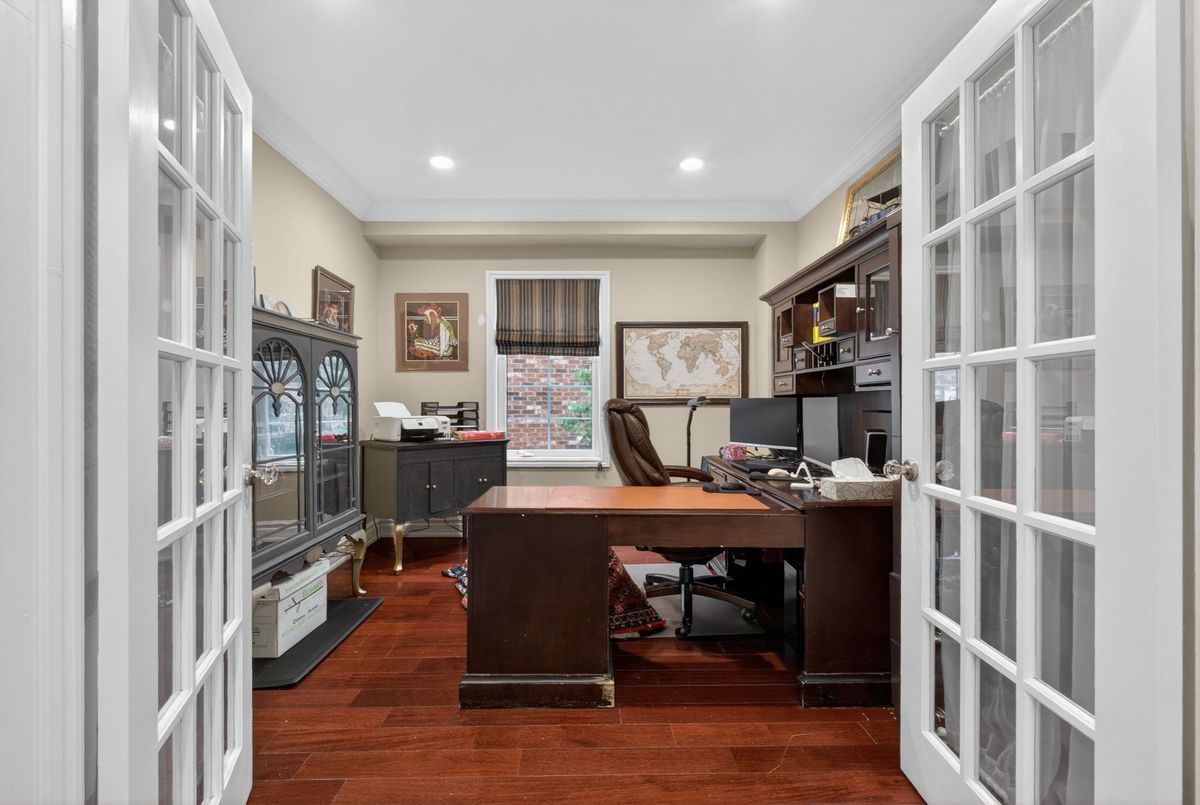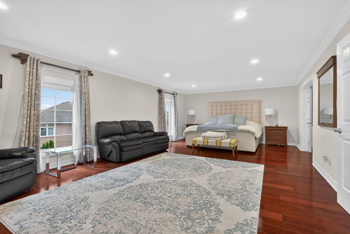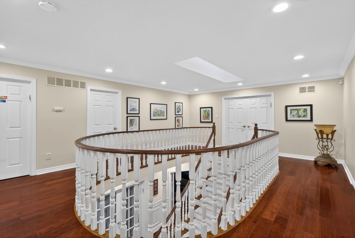 A rare opportunity to own one of the largest two-storey homes (nearly 6,000 sqft. of total living space) in Heritage Estates, Mill Pond-set on a premium pie-shaped lot widening to almost80 ft at the rear on one of the area's most sought-after streets. This impressive residence offers approx. 4,000 sqft. above grade plus a fully finished ~1,900sqft. basement. Featuring 4+2 bedrooms and 6 bathrooms, its floor plan is suited for growing families and refined living. The main floor showcases 9-ft ceilings and a well-designed, functional layout, including a spacious home office and a magnificent Scarlett O'hara staircase. The chef-inspired kitchen is equipped with top-of-the-line stainless steel appliances, with direct access to the deck and seamless flow to the backyard-perfect for everyday living and entertaining. The primary suite is a luxurious retreat, offering generous space, an oversized walk-in closet, and a fully renovated spa-like ensuite with a Bain Ultra bathtub which offers superior comfort and hydro-thermo massage experience, private sauna, double vanity, makeup station, and premium finishes. One secondary bedroom also features its own private ensuite. this house also offers two additional generously sized bedrooms with oversized windows on the second floor. The finished basement adds exceptional flexibility with 2 additional bedrooms (one with heated-floor ensuite, one ideal as a bedroom or gym), a separate entrance, powder room with heated floors, and kitchen rough-ins-ideal for in-law or extended family living. Set on over 7,000 sqft., the south-facing backyard is beautifully landscaped and framed by mature trees, offering outstanding privacy and a serene setting for outdoor enjoyment.