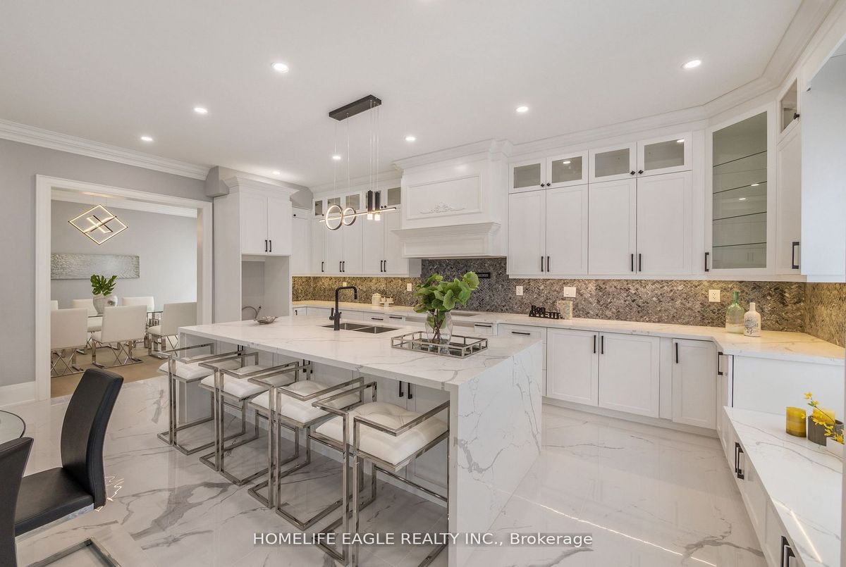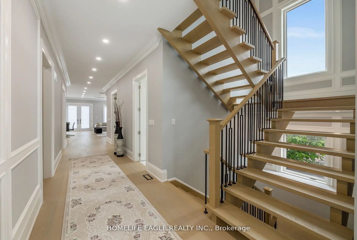Custom detached home on a massive 50 x 195 premium lot, featuring 4+2 bedrooms and 7 luxurious bathrooms. Located mere moments from Newmarket's Historic Main Street, this architectural masterpiece boasts an impressive 5,700SqFt of luxury living, including a meticulously finished walk-out basement. From its captivating stone exterior and contemporary garage doors to the grand entrance, every detail exudes elegance. 10ft ceilings on the main and basement floor and 9'8ft ceilings on the second floor. Custom wall paneling throughout the home. The chef's kitchen is a culinary oasis with an 8-ft waterfall island, custom cabinetry, a large pantry, and exquisite finishes. The primary bedroom offers an elegant ensuite with designer touches & heated floors and a custom walk-in closet. Bedrooms feature custom closets and private bathrooms. The finished basement presents a large recreation area, two bedrooms, two bathrooms, large windows, kitchen rough-in and a walk-out to the yard * Must See