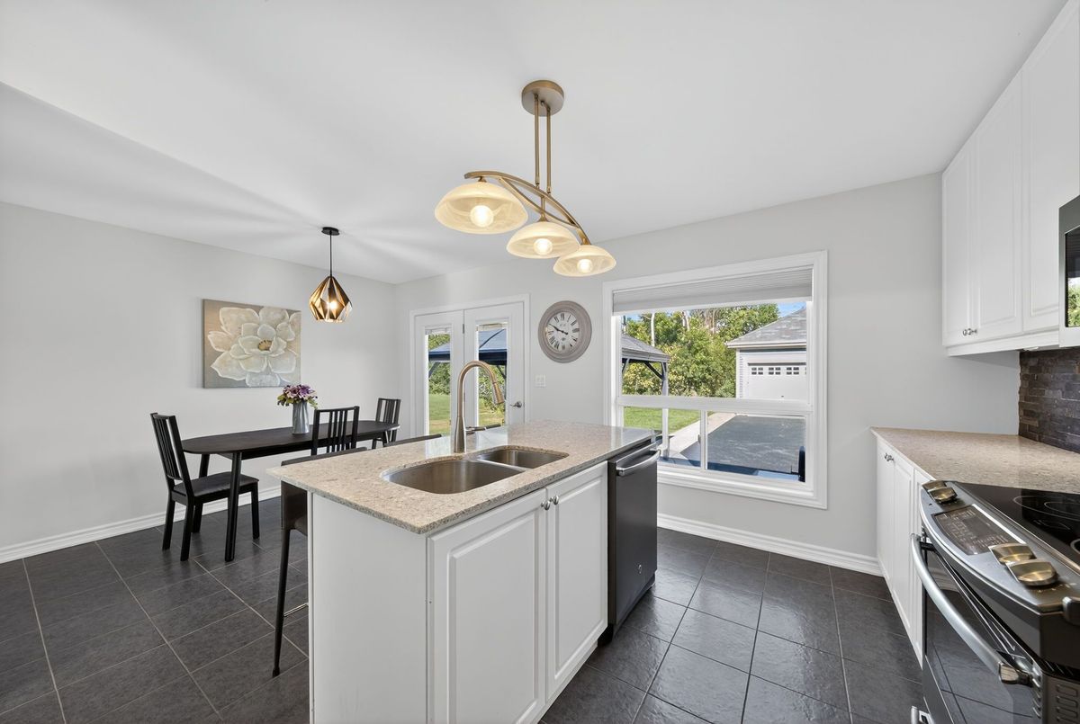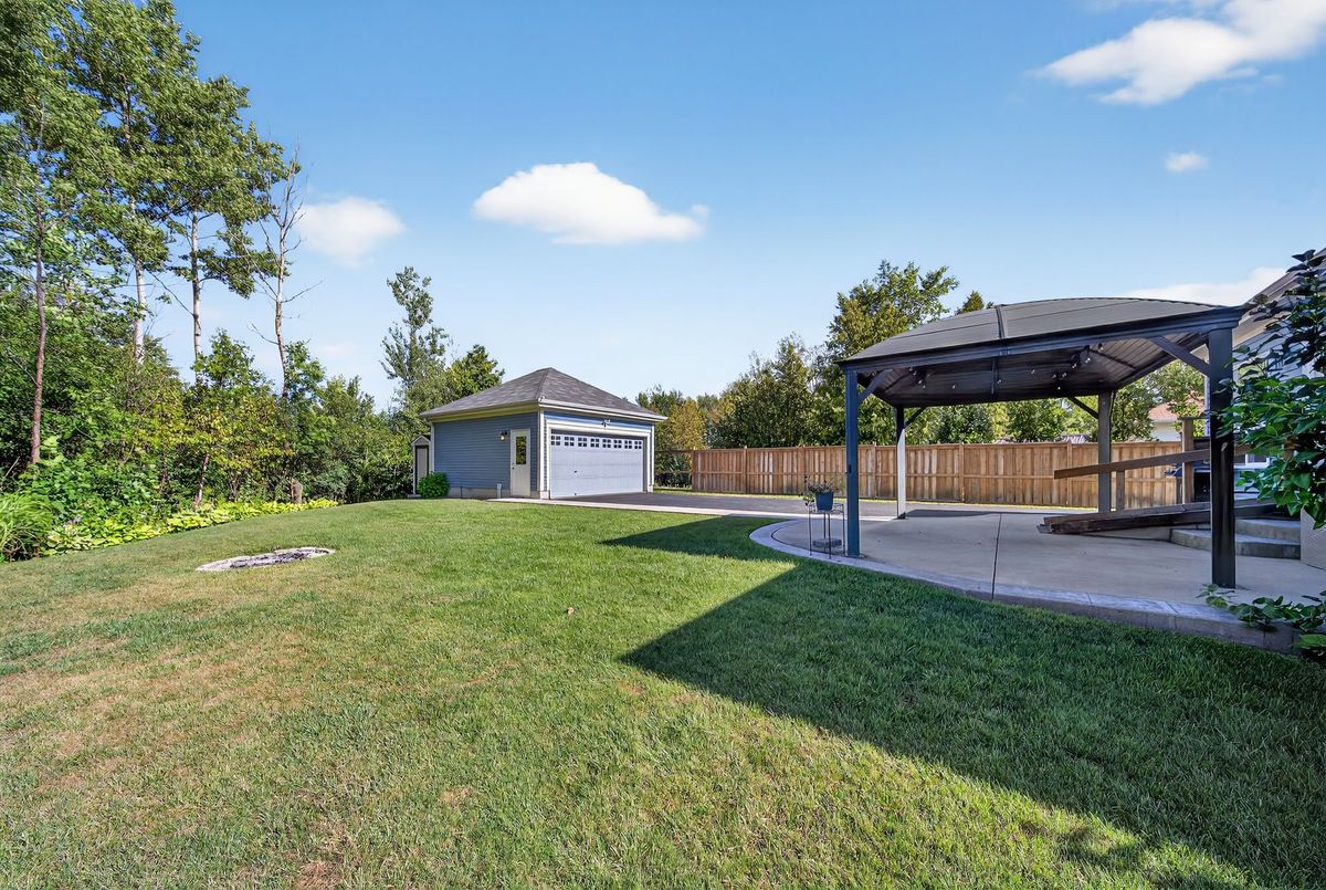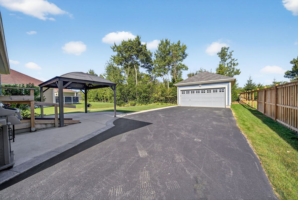 Tucked away on a quiet court just minutes from the sandy shores of Wasaga Beach, this beautifully appointed 2+1 bedroom, 2 bath bungalow offers the perfect blend of comfort, privacy, and style all on one level. Built in 2016, this home sits on a landscaped lot with an impressive 400 sq ft detached garage, ideal for a workshop, storage, or additional parking. Inside, you'll find high-end finishes throughout, including luxurious solid stone countertops in the kitchen and bathrooms, engineered vinyl plank flooring, and stainless steel appliances. The eat-in kitchen is bright and functional, seamlessly connecting to the main living space, where a full wall of windows floods the room with natural light and brings the outdoors in. The primary bedroom features a semi-ensuite bath and overlooks a private stone patio complete with a charming pergola your own peaceful retreat for morning coffee or evening relaxation. The second bedroom is generously sized, and the additional room offers flexibility as a guest space, office, or hobby area. Outside, the inground sprinkler system keeps both the lawn and flower gardens lush and thriving. With its low-maintenance exterior, premium finishes, and unbeatable location just a short stroll to the beach, this home is ideal for downsizers, retirees, or anyone looking to enjoy life by the water in style. Don't miss your chance to live in one of Wasaga's most desirable settings private, modern, and move-in ready!
