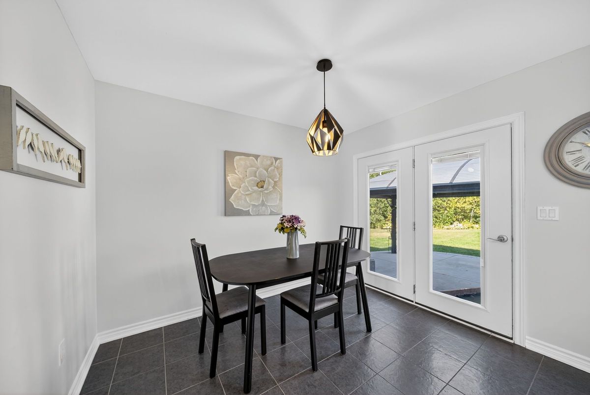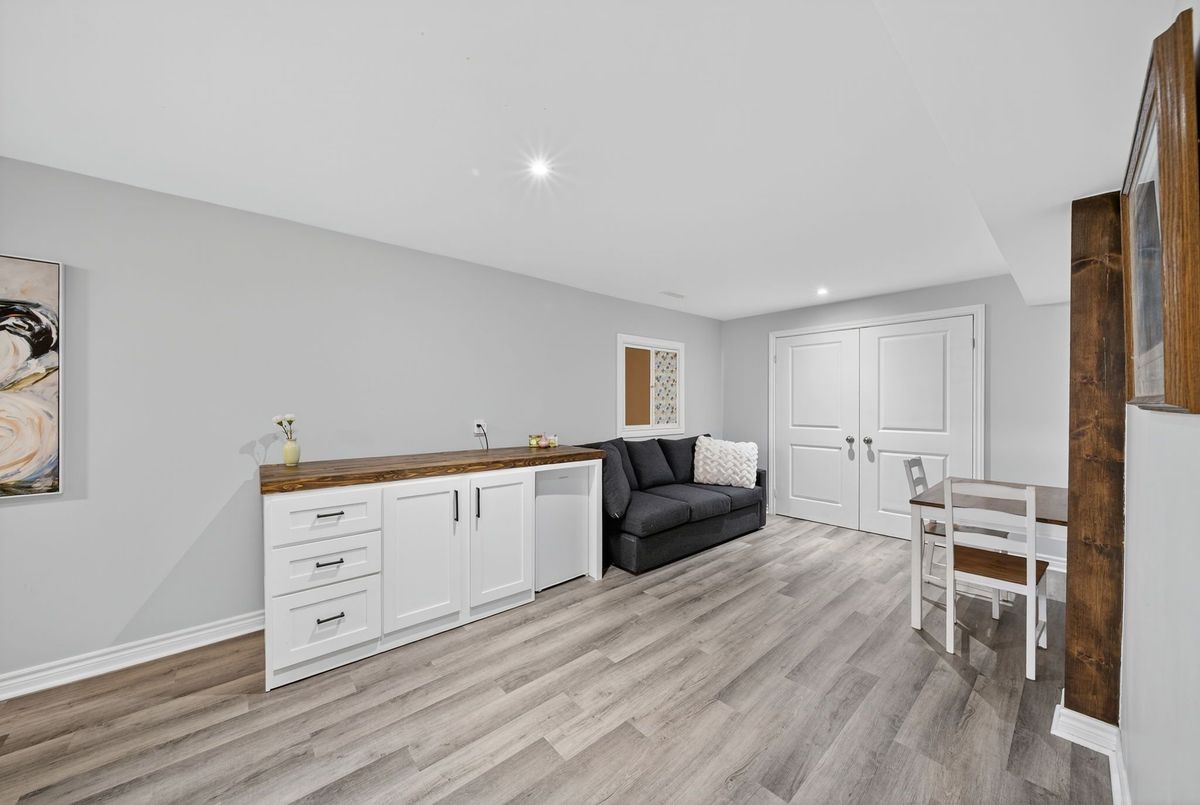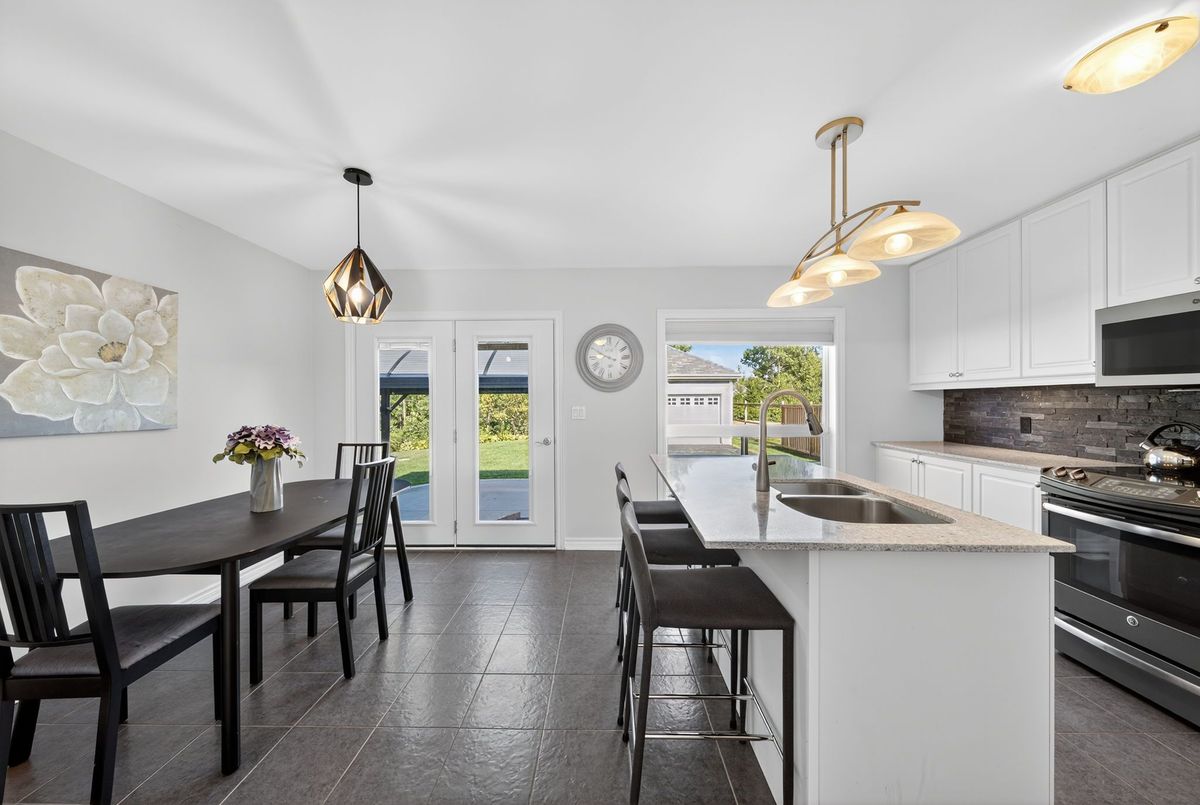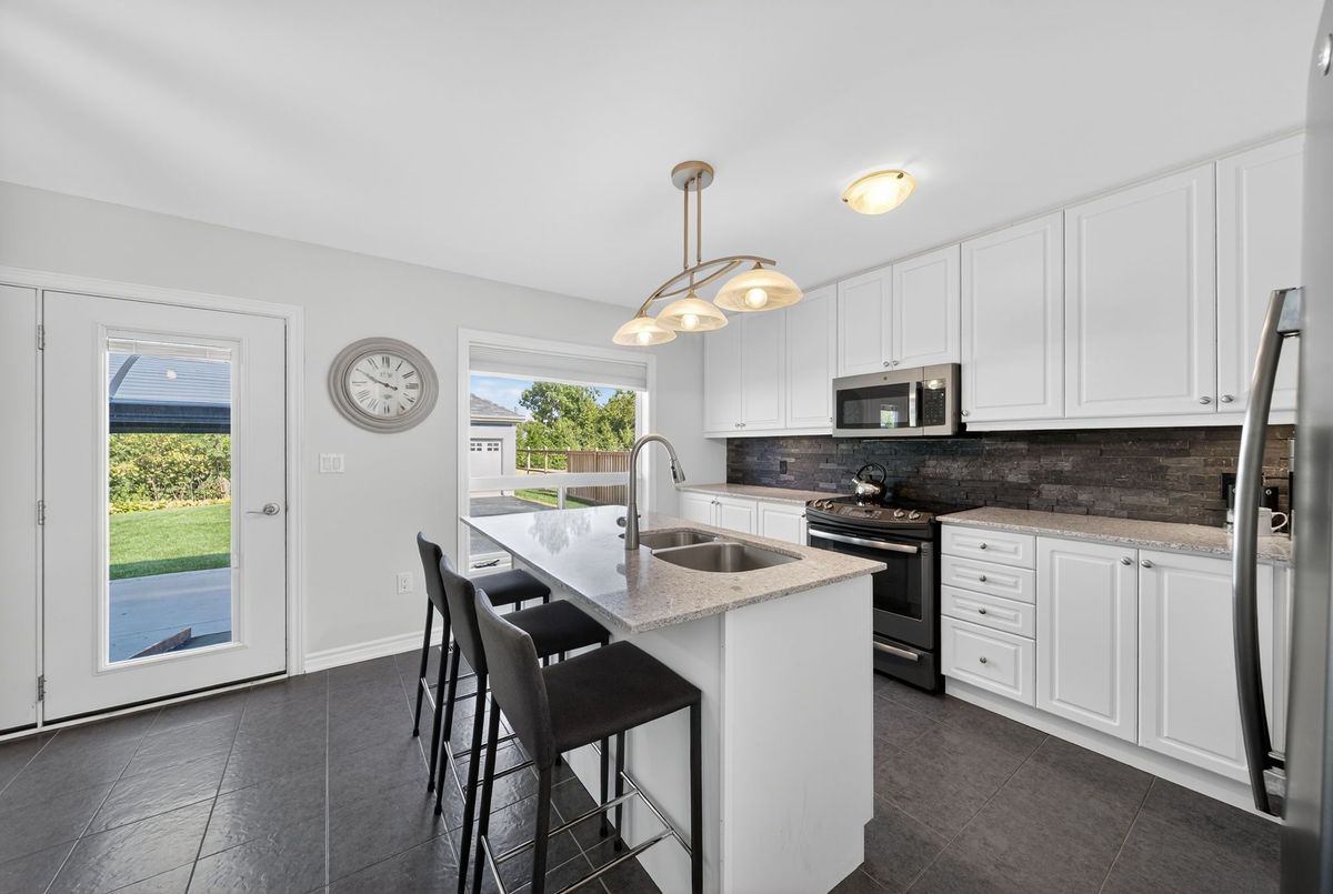 Tucked away on a quiet court just minutes from the sandy shores of Wasaga Beach, this beautifully appointed 2+1 bedroom, 2 bath bungalow offers the perfect blend of comfort, privacy, and style all on one level. Built in 2016, this home sits on a landscaped lot with an impressive 400 sq ft detached garage, ideal for a workshop, storage, or additional parking. Inside, you'll find high-end finishes throughout, including luxurious solid stone countertops in the kitchen and bathrooms, engineered vinyl plank flooring, and stainless steel appliances. The eat-in kitchen is bright and functional, seamlessly connecting to the main living space, where a full wall of windows floods the room with natural light and brings the outdoors in. The primary bedroom features a semi-ensuite bath and overlooks a private stone patio complete with a charming pergola your own peaceful retreat for morning coffee or evening relaxation. The second bedroom is generously sized, and the additional room offers flexibility as a guest space, office, or hobby area. Outside, the inground sprinkler system keeps both the lawn and flower gardens lush and thriving. With its low-maintenance exterior, premium finishes, and unbeatable location just a short stroll to the beach, this home is ideal for downsizers, retirees, or anyone looking to enjoy life by the water in style. Don't miss your chance to live in one of Wasaga's most desirable settings private, modern, and move-in ready!