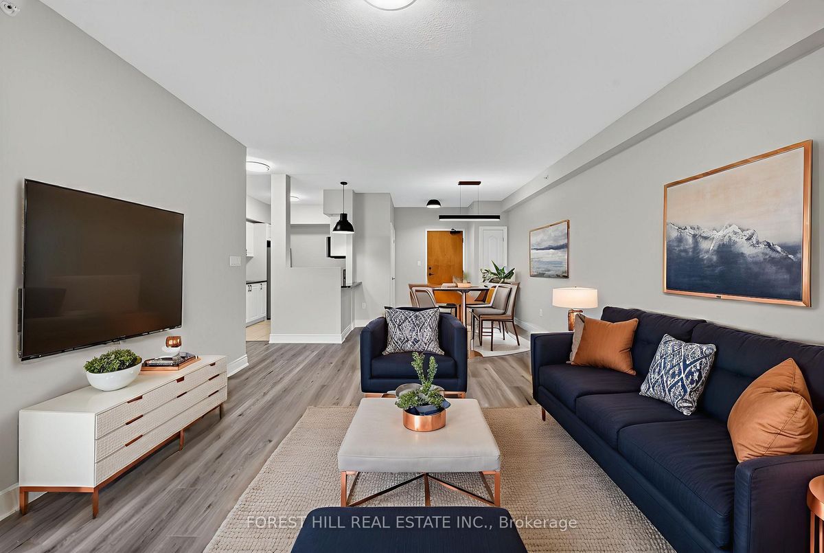 Welcome to 100 Dean Ave unit#106! This bright and spacious 2 bedroom, 2 full bathroom condo is truly move-in ready, featuring brand new flooring throughout and a freshly painted interior for a clean, modern look. Soaring 9-foot ceilings and large windows create an airy feel and fill the home with natural light. The stylish kitchen boasts stainless steel appliances and ample counter space, flowing seamlessly into the open living and dining area- perfect for both everyday living and entertaining. The primary suite features its own walk-in closet and full ensuite bathroom, while the second spacious bedroom is ideal for guests or family. Enjoy your morning coffee or an evening unwind to your open balcony, complete with window coverings for privacy and comfort. Perfectly located just minutes from shopping malls, Highway 400, the GO Train, and scenic walking trails. This condo offers modern comfort, convenience, and an unbeatable location- all ready for you to move in and enjoy.