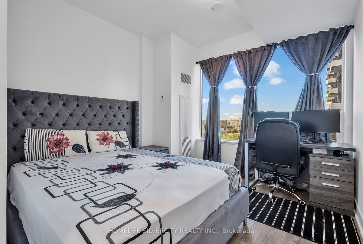 Bright & Spacious full 2 Bed, 2 Bath Condo in Prime Location! Enjoy high ceilings, oversized windows, and natural light in this open-concept condo with a gourmet kitchen, stainless steel appliances, and private balcony. Two large bedrooms, two full baths, and in-suite laundry offer comfort and convenience. Includes one underground parking space and a storage locker. Building amenities: concierge, gym, outdoor pool, party room, pet wash, and guest suites. Unbeatable location-steps to Walmart, Superstore, LCBO, restaurants, shops and transit.