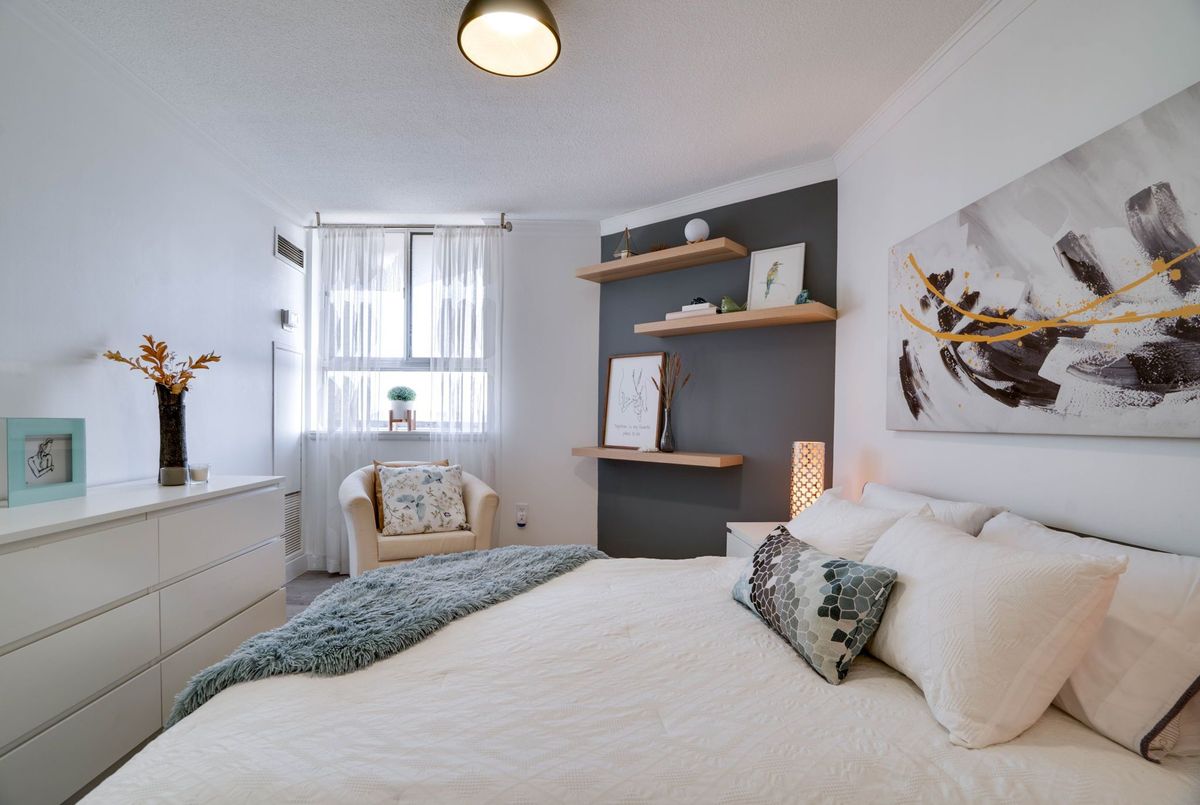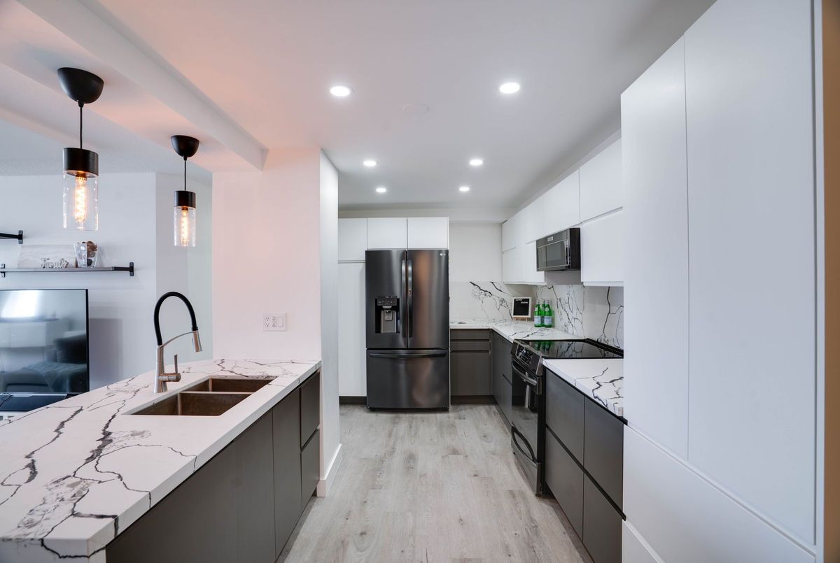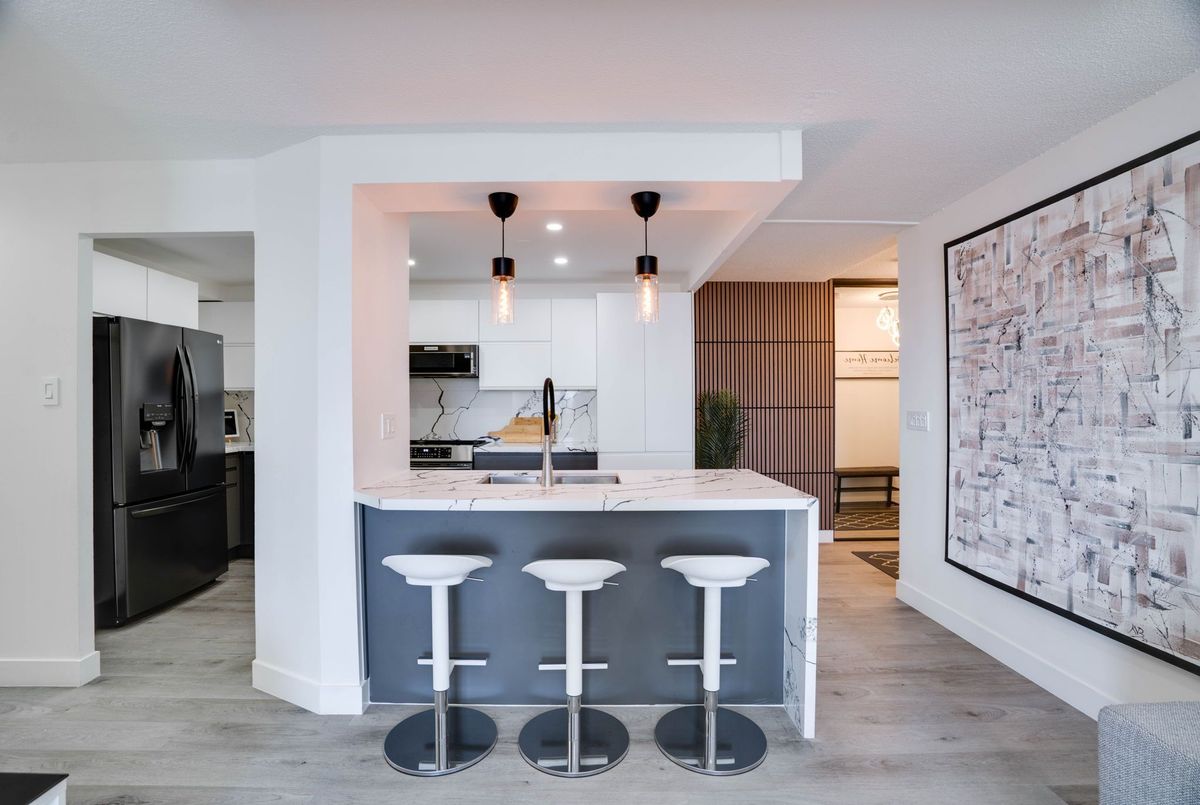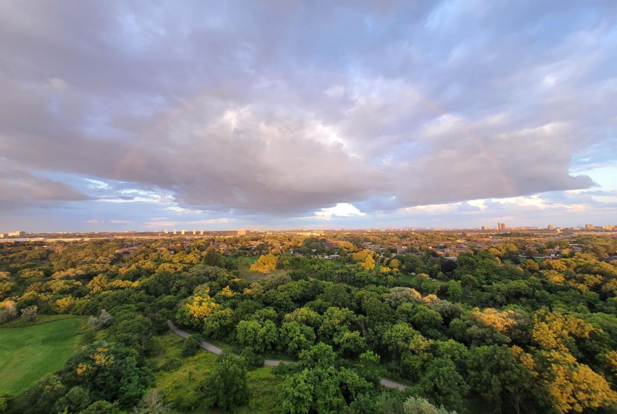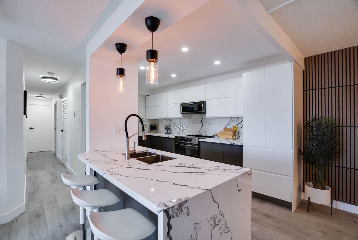 Stunning 3-Bedroom Condo | $$$ in Renovations | Scenic Balcony Views. Welcome to this meticulously upgraded 1,244 sq. ft. condo, where contemporary design meets modern elegance! With top-tier craftsmanship renovations, this 3-bedroom, 2-bathroom home in the heart of Elms-Old Rexdale, Toronto is a true showstopper. Step inside and be captivated by the open-concept layout, boasting a modern kitchen featuring sleek quartz countertops, a spacious peninsula with a double sink and seating area, custom cabinetry, and premium stainless-steel appliances. The living and dining area is an entertainers dream, enhanced by pot lights, a striking coffered ceiling, expansive bay window, and seamless access to the large balcony where you can unwind and soak in the picturesque views of West Humber Recreational Trail and Humber Valley Golf Course. Retreat to the comfort of the primary suite, complete with a walk-in closet and updated ensuite bathroom. The two additional bedrooms offer generous space, while the renovated main bathroom exudes style and sophistication. Enjoy the convenience of an ensuite laundry room with a full-size side by side washer and dryer. The brand-new electrical panel will ensure modern efficiency and bring you peace of mind. Nestled in a prime location, you'll have easy access to transit, shopping, dining, entertainment and great schools. Building Features a exterior pool, sauna & gym .Don't miss your opportunity to view this gem. Schedule your private showing today!