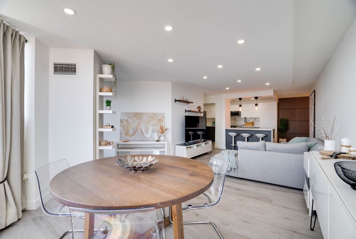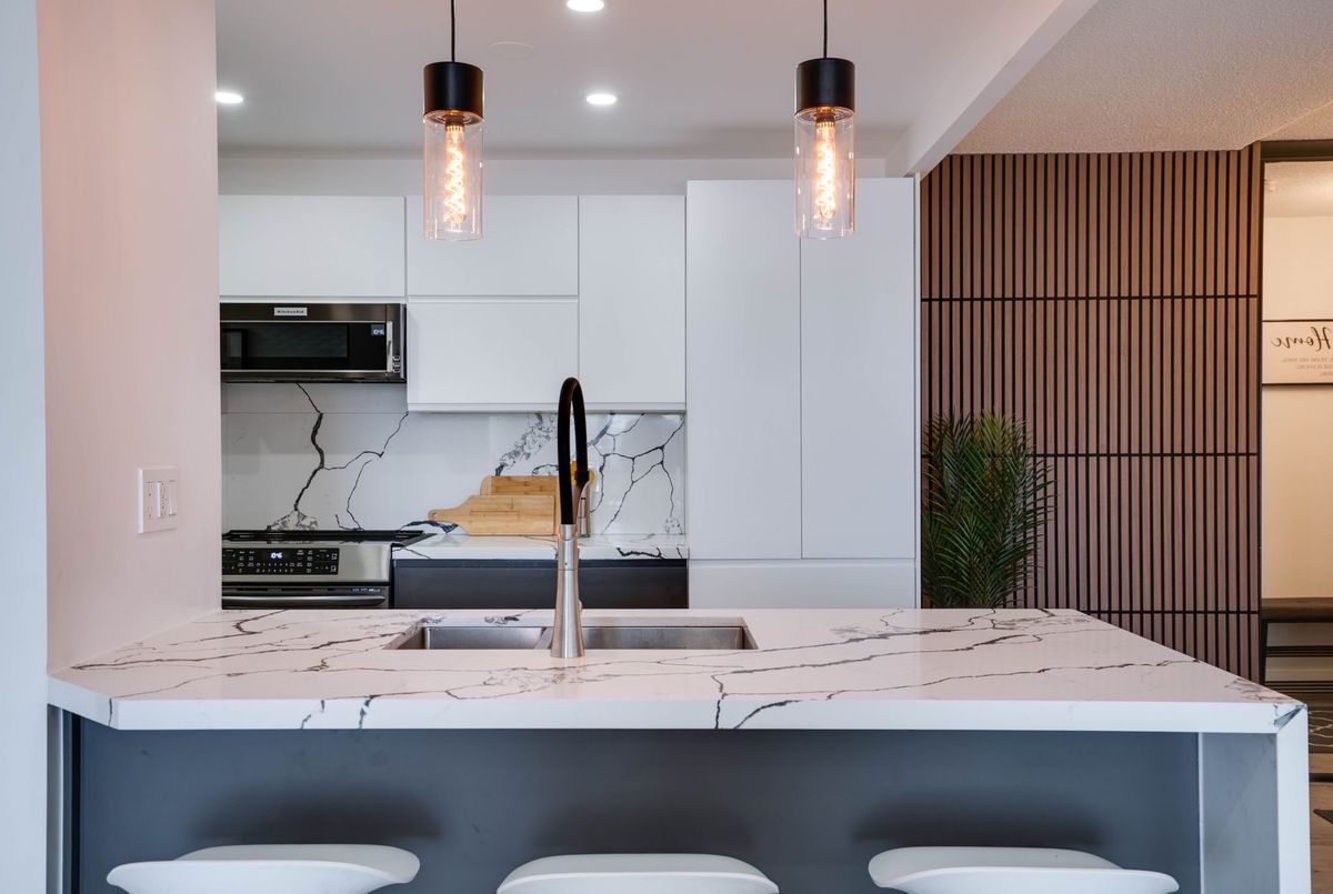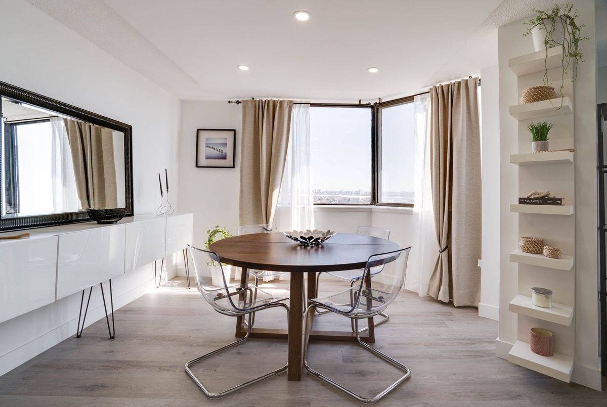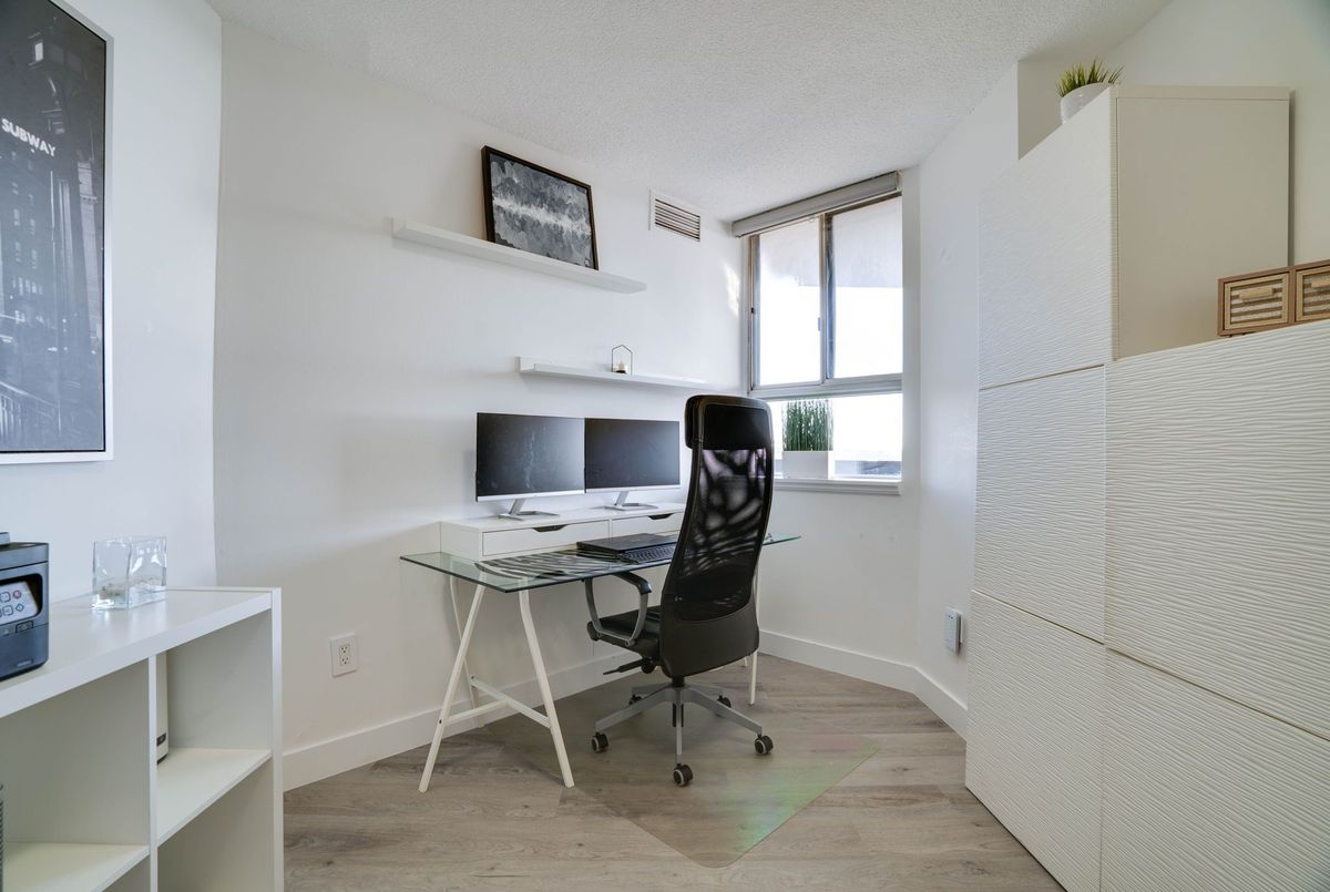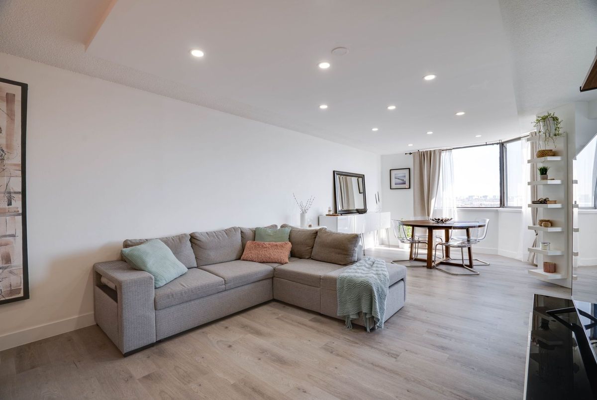 Stunning 3-Bedroom Condo | $$$ in Renovations | Scenic Balcony Views. Welcome to this meticulously upgraded 1,244 sq. ft. condo, where contemporary design meets modern elegance! With top-tier craftsmanship renovations, this 3-bedroom, 2-bathroom home in the heart of Elms-Old Rexdale, Toronto is a true showstopper. Step inside and be captivated by the open-concept layout, boasting a modern kitchen featuring sleek quartz countertops, a spacious peninsula with a double sink and seating area, custom cabinetry, and premium stainless-steel appliances. The living and dining area is an entertainers dream, enhanced by pot lights, a striking coffered ceiling, expansive bay window, and seamless access to the large balcony where you can unwind and soak in the picturesque views of West Humber Recreational Trail and Humber Valley Golf Course. Retreat to the comfort of the primary suite, complete with a walk-in closet and updated ensuite bathroom. The two additional bedrooms offer generous space, while the renovated main bathroom exudes style and sophistication. Enjoy the convenience of an ensuite laundry room with a full-size side by side washer and dryer. The brand-new electrical panel will ensure modern efficiency and bring you peace of mind. Nestled in a prime location, you'll have easy access to transit, shopping, dining, entertainment and great schools. Building Features a exterior pool, sauna & gym .Don't miss your opportunity to view this gem. Schedule your private showing today!