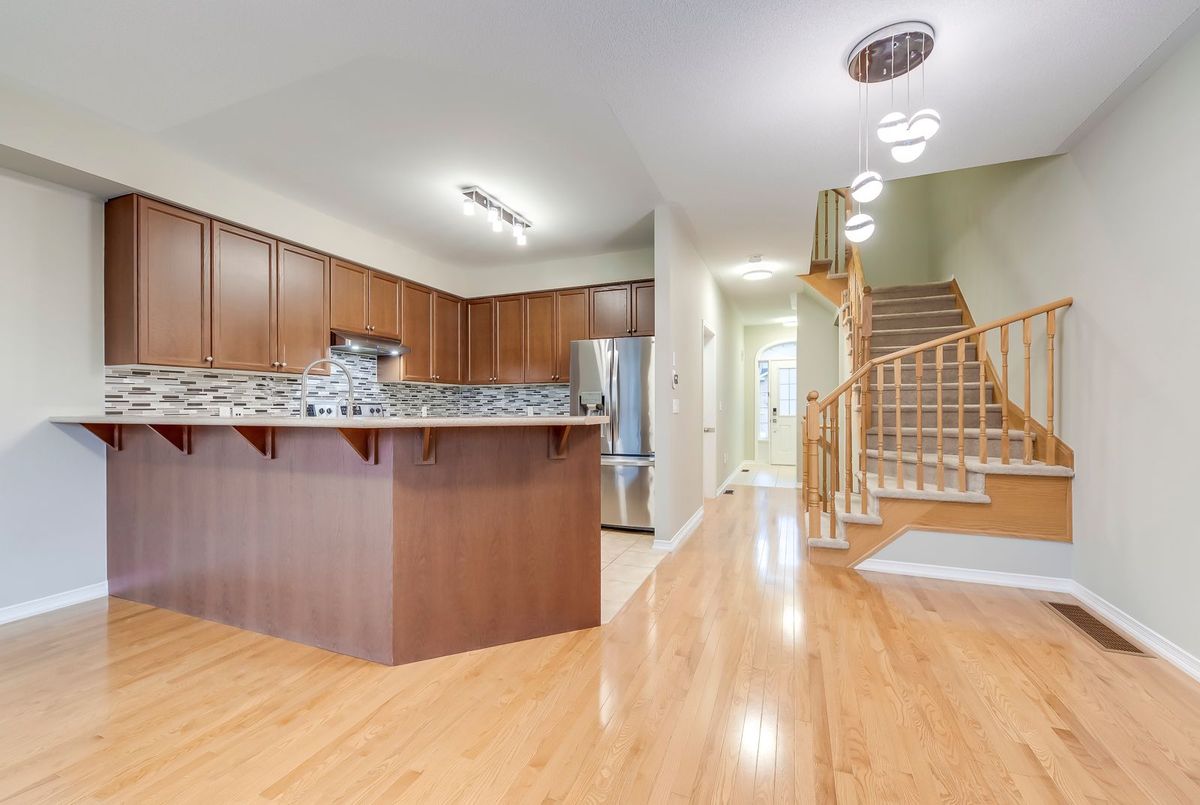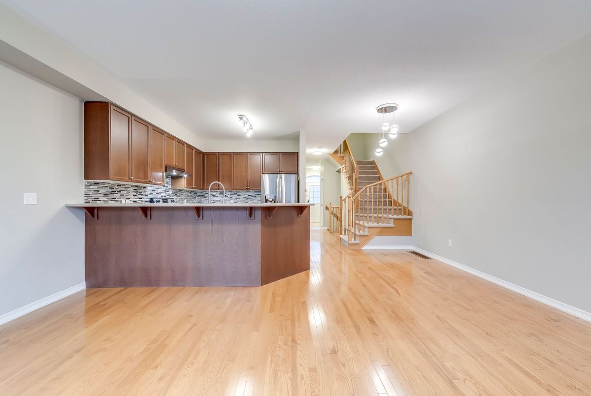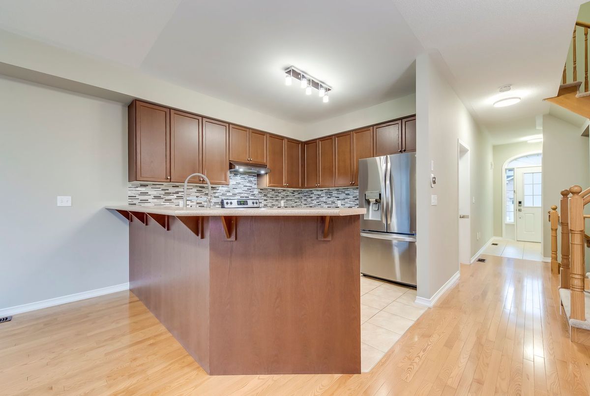 Step into this beautifully upgraded executive freehold townhouse offering estimated living space of Beautiful 3 Bedroom 3 bath Townhome In A Fantastic Area Close To All Amenities.backing on green space. Open concept main floor, Large Kitchen With Stainless Steel Appliances, Breakfast Bar And Lots Of Cupboard Space. Features 9Ft Ceilings, Hardwood Floors, Convenient 2-Piece Washroom and inner access to garage On Main Level. Large Master Bedroom With 4-Piece En Suite Featuring Separate Soaker Tub/Shower And Walk-In Closet. 2 good sized bedroom and one big main bathroom, Fully Fenced Backyard For Privacy. plenty of guest parkings. Just Move-In And Enjoy! nice landlords
