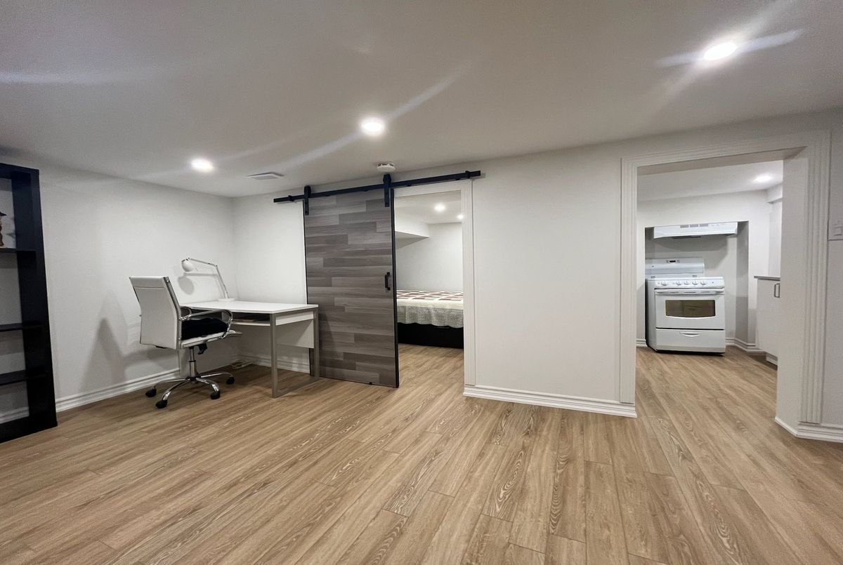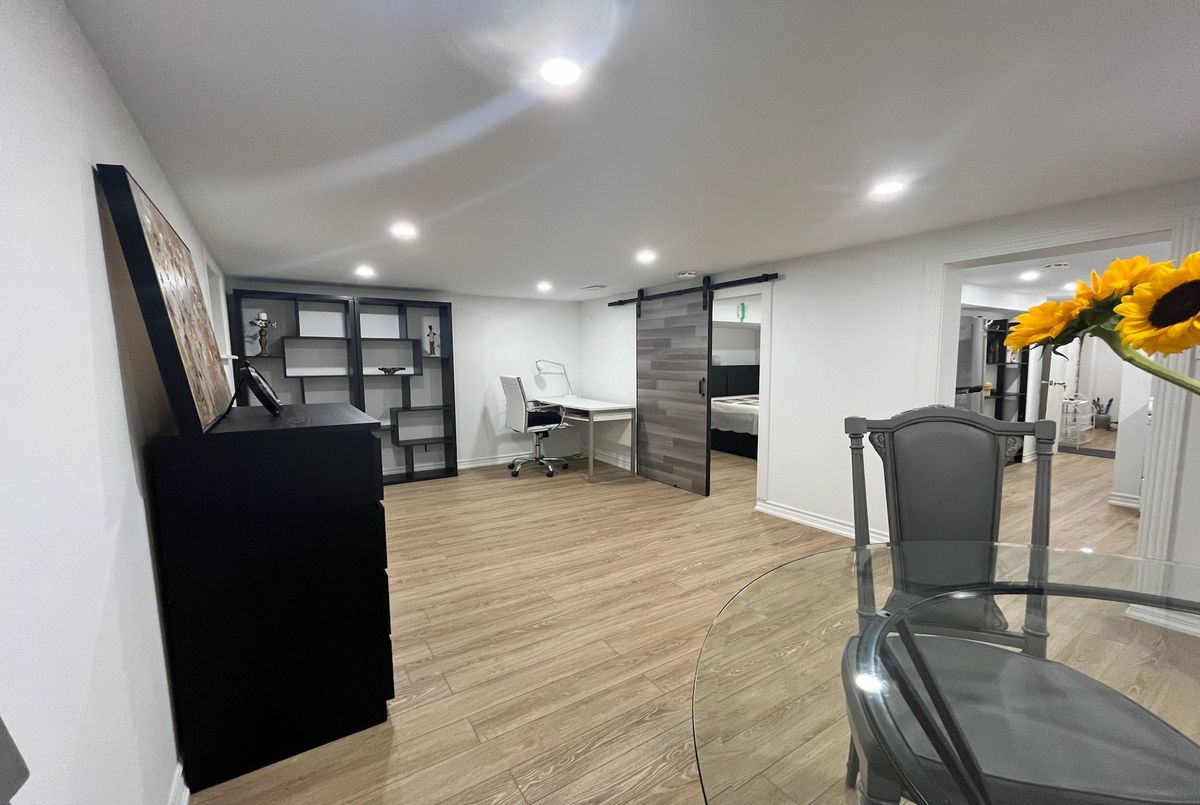 Recently Renovated! This Immaculately Laid Out 1 Bedroom & 1 Bathroom Basement Apartment Is All You Are Looking For! Cozy and Furnished (option for unfurnished) With Vinyl Floors and Pot Lights Throughout, This Bright Space Is Just Simply Move-In Ready! Spacious Kitchen Features Stainless Steele NEW Fridge & Lots Of Cabinetry For Additional Storage. Expansive Living/Dining Area Allow For Ample Space For Entertaining & Relaxing. Enter The Lovely Primary B/R Through The Sliding Barn Door! The NEW Bathroom Features A Stunning Glass Shower! Enjoy The Convenience Of On-Site Laundry! Ideally Located Minutes To Major Highways, Transit (10 min walk to Glencairn Subway Stn), Parks, Schools, Shopping (Yorkdale Mall) and More!