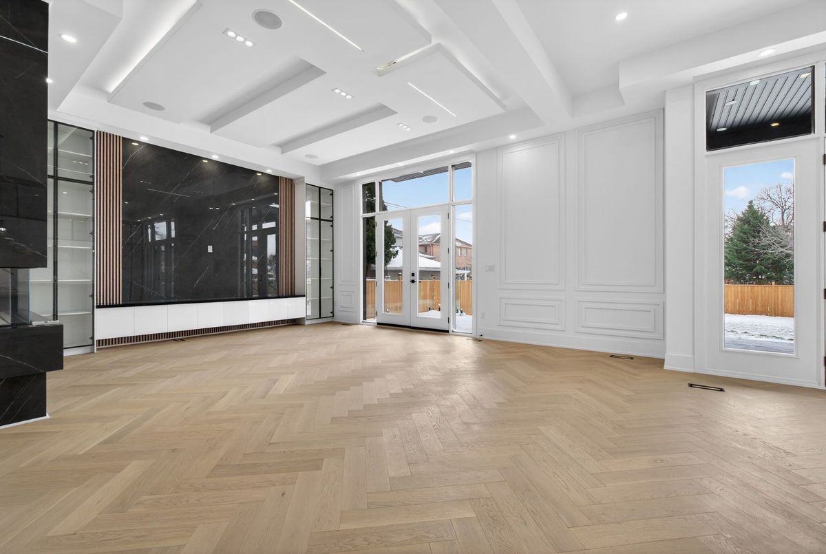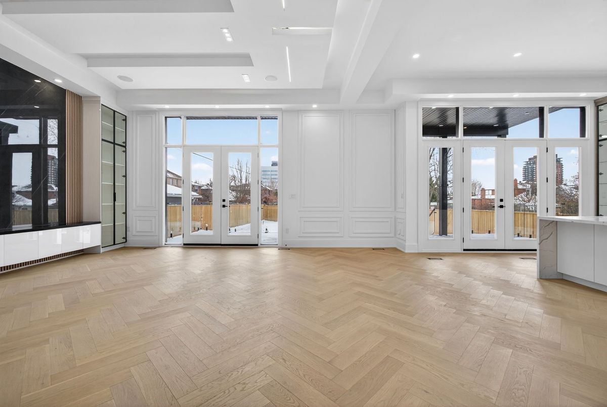 Absolutely stunning modern custom-built home in a prime Toronto location, showcasing exceptional craftsmanship and luxury designer finishes throughout. No expense spared in this architectural masterpiece featuring soaring 24-ft ceilings in the grand open-to-above foyer, dramatic custom millwork, extensive wainscoting and crown moulding, and rich herringbone-style hardwood flooring throughout. Thoughtfully designed with impeccable attention to detail, this home offers 12-ft ceilings on the main floor and 11-ft ceilings on the second floor, complemented by custom lighting, built-in surround sound, and high-end decor elements that elevate every space. The open-concept layout seamlessly blends elegance and functionality, highlighted by a stunning 3-sided fireplace connecting the dining and family rooms, a marble feature wall with custom cabinetry, and a designer chef's kitchen with premium panelled JennAir appliances, Wolf cooking package, oversized centre island, and a fully equipped walk-in pantry. Walk out to a beautifully finished composite deck and private patio, perfect for outdoor entertaining. Additional features include a Cambridge elevator servicing all levels, a custom floating wood staircase with glass railing, a main floor office with floor-to-ceiling windows, and a mudroom with built-in storage and marble finishes. The second level offers spacious bedrooms with ensuites and a luxurious primary retreat with fireplace, balcony, spa-inspired 5-piece ensuite, and custom walk-in closet. The fully finished lower level includes a separate apartment setup with walkout, full kitchen, additional bedrooms, recreation space with bar, and second laundry. Complete with 400-amp service, two tankless water heaters, and a total of 7 bedrooms and 8 bathrooms, this extraordinary residence delivers unparalleled luxury living inside and out, all within close proximity to Yorkdale Mall, Allen Road, and Highway 401.