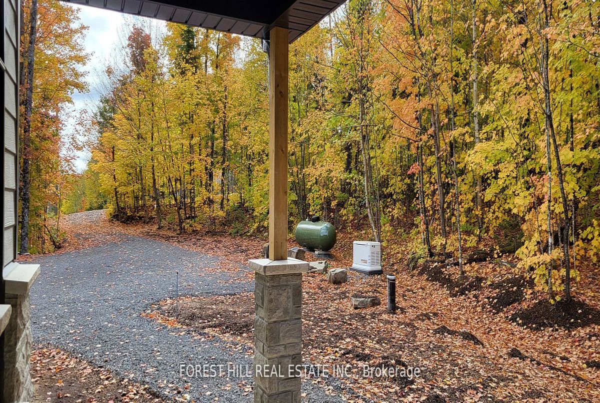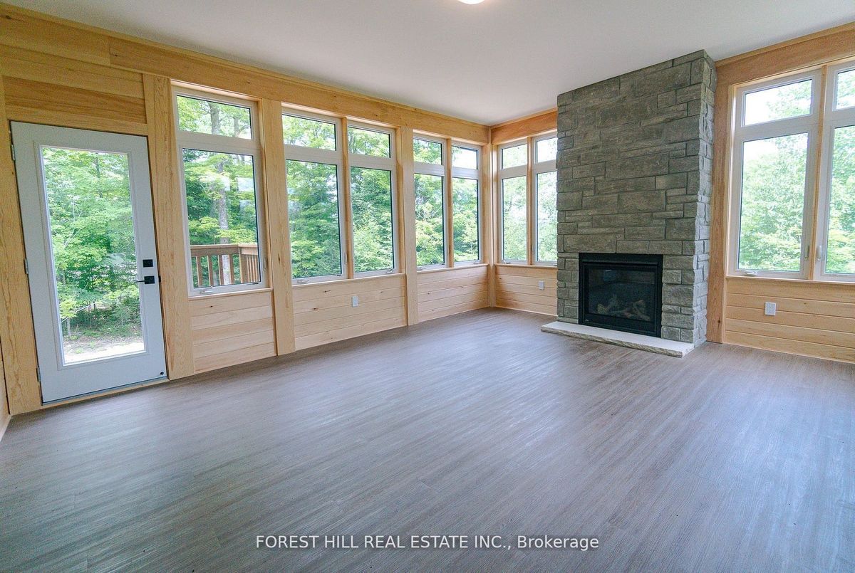 Gorgeous custom built by Signature communities this beautiful 2 bedroom + Den home is a sight to behold from the long driveway surrounded by trees on either side this over 2000 sq ft bungalow is both functional and elegant! Hardwood floors throughout, fireplace in the great room and a unique Muskoka room which is unique in the area and very impressive it features windows all around, floor to ceiling stone fireplace and can be used year round. A completed deck with glass railing adds a great place to entertain. BONUS FREE SNOW REMOVAL + FREE BELL FIBE INTERNET FOR 1 YEAR, TESLA UNIVERSAL CHARGER INCLUDED.