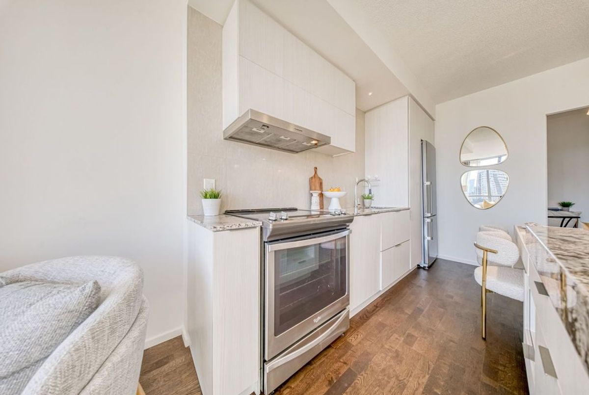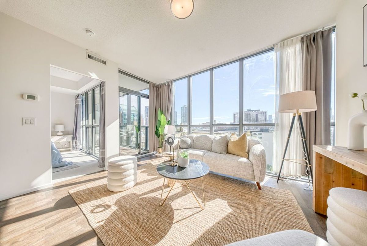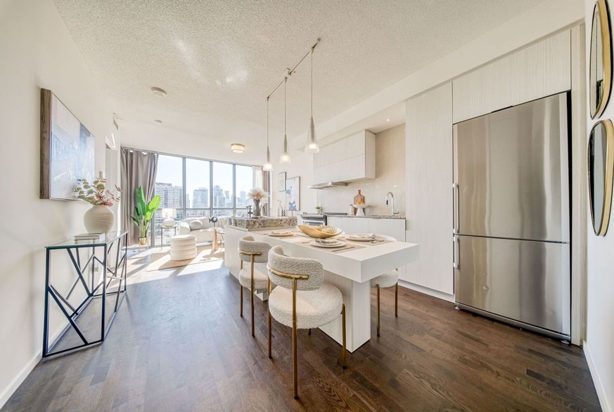 Welcome to suite 1103 at 101 Charles St East, where luxury meets convenience. This exceptional 1-bedroom plus den unit offers a spacious 741 sq ft of meticulously designed living space, plus a sun-drenched 55 sq ft south-facing balcony perfect for your morning coffee or evening cocktails. Enjoy the best of city living with Yorkville's upscale shops, gourmet dining, and subway access just moments away. Step inside to an inviting open-concept floor plan highlighted by dramatic 9-foot ceilings and expansive floor-to-ceiling windows that capture an abundance of natural light. The contemporary kitchen, complete with a large island, is a chef's delight. The highly functional den, featuring a pre-installed sliding door, easily transforms into a dedicated home office or a cozy second bedroom. Freshly painted and move-in ready, the primary bedroom offers an impressive walk-in closet. Experience sophisticated city living at its finest!