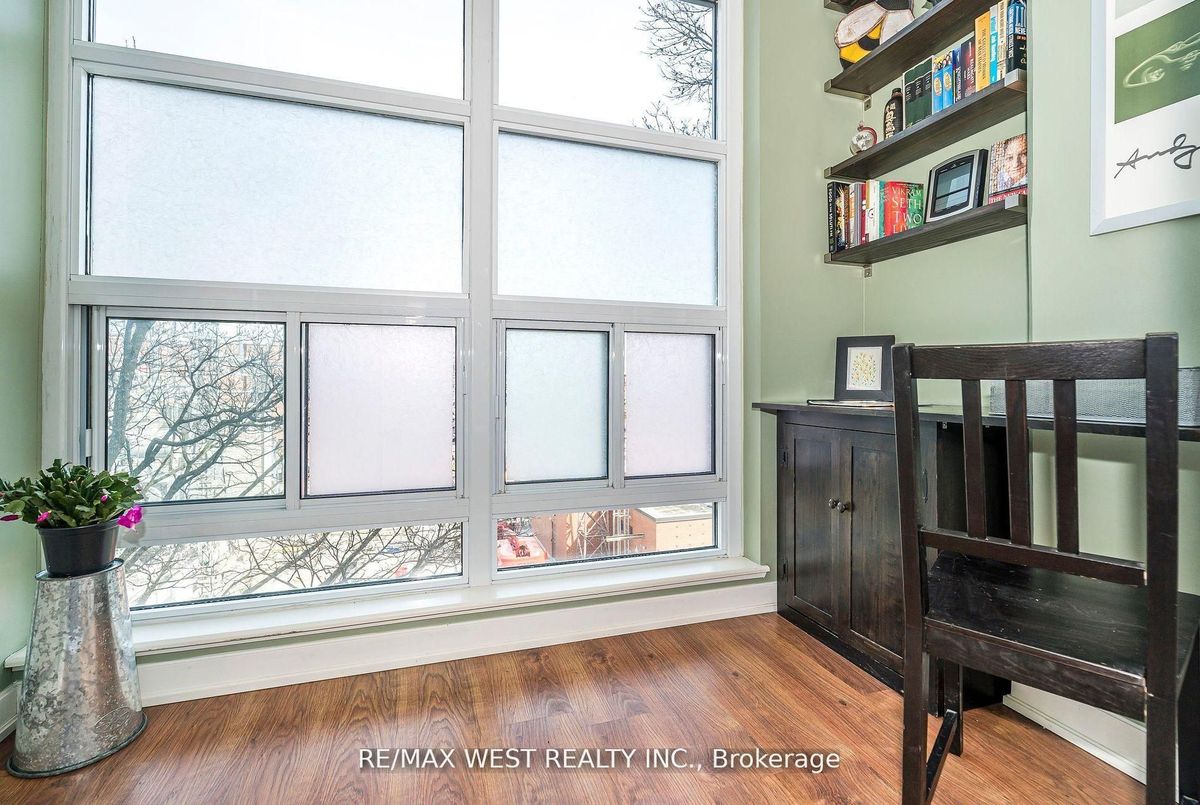 PRICED TO SELL! Popular Madison Avenue Lofts, Art Deco styling, exposed concrete, chic New York inspired loft with 14' ceilings! Coveted 1 Bedroom + Den is move-in ready. A short 5 minute walk to Dupont Subway, just south of Casa Loma, Walk Score 95, Bike Score 95. A real dog-lovers delight, pet friendly building. Enjoy soaring ceilings, natural light from floor-to-ceiling windows, modern full-size appliances, ensuite laundry, enclosed DEN for those who work or hobby from home. Common elements include large media/movie and Party rooms for family & friends gatherings. Quiet neighbourhood, new park opening across the street, 24 hour Concierge, lots of Visitors parking, quick stroll to George Brown, "Ave and Dav" shopping, Creeds cafe, Yorkville, and the newly fashionable Dupont strip. Landscaped outdoor courtyard with benches, unlimited Bell Fibe included in Maintenance Fee for a limited time, Rooftop Terrace & BBQ with amazing views of Casa Loma and downtown Toronto.