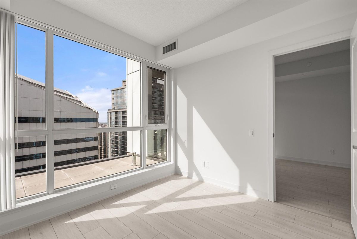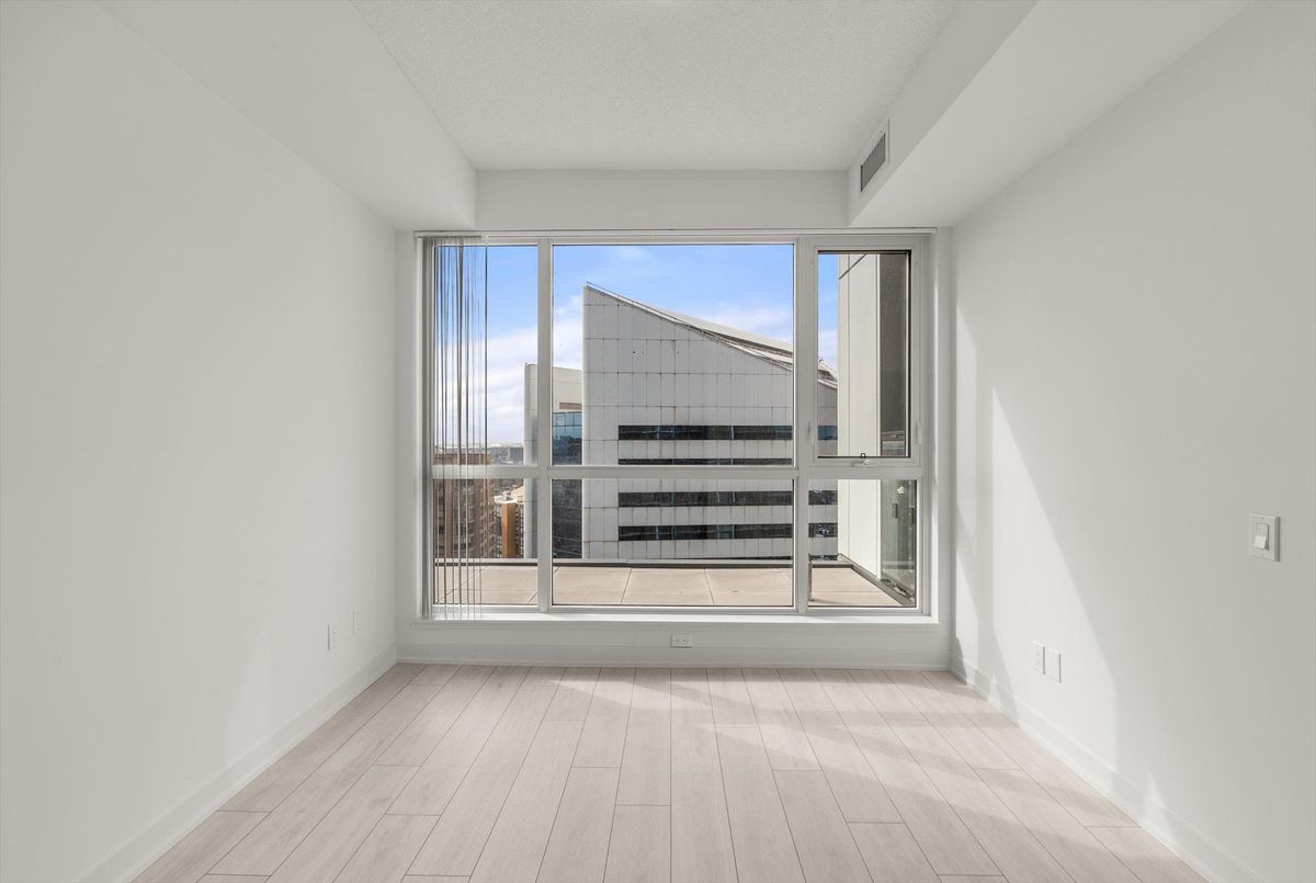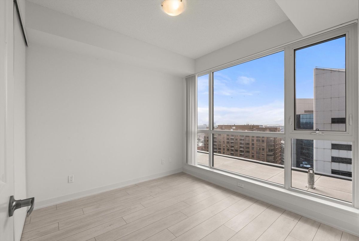 Welcome To The Newly Built Pearl Place Condominiums, Stylish 1+1 unit with a spacious 582 sq/ft open-concept layout. The den can easily serve as a second bedroom or home office. Enjoy 9-foot ceilings, floor-to-ceiling windows, and abundant natural light throughout. The modern kitchen features quartz countertops and stainless steel appliances. Step onto the West-facing balcony for unobstructed views and privacy.Located in the heart of North York, this condo offers unmatched convenience. Just steps from Yonge-Sheppard subway station, Empress Walk, Loblaws, and an array of restaurants, cafes, and entertainment. Enjoy access to luxury amenities coming soon, including a gym and rooftop terrace. Commuting is seamless with easy access to TTC transit and Highway 401.Experience urban living at its finest!